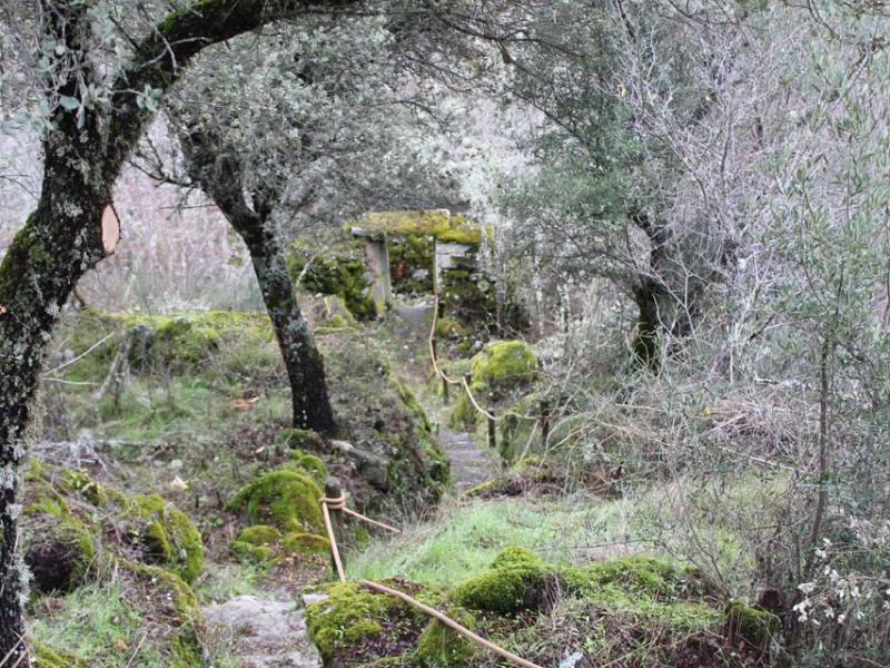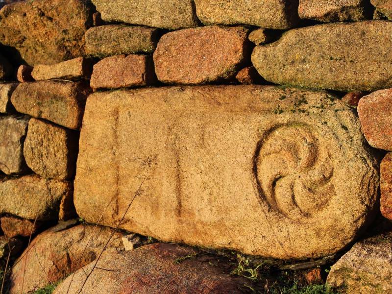 Se conserva un conjunto de grabados, tanto en rocas como en sillares de la muralla, que representan caballos y otros animales. Los grabados de figuras humanas son escasos, como una escena de caza, en la que unos jinetes, armados de lanzas, acosan a unos jabalíes.