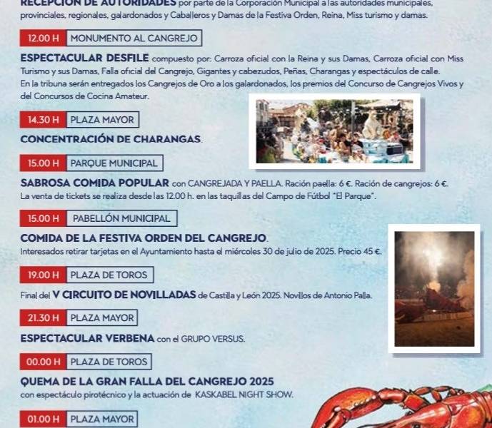 Among the activities prepared for the occasion are the fancy dress contest and the parade of carriages, which brings a myriad of colours to the festival. The competitions of live and prepared crabs are the events proceeding one of the most awaited events of the festivities: the crab paella, available for everybody who attends the celebrations.