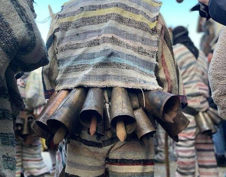 The party of the cucurrumachos takes place on "el Domingo Gordo", or "Carnival Sunday". The cucurrumachos wear a "pinguera blanket" jumpsuit, cover their face with the mask, and carry cowbells. They carry a saddlebag filled with straw and they are often armed with pitchforks or carry banners with animal skulls and bones.