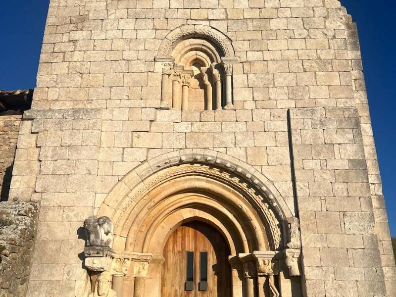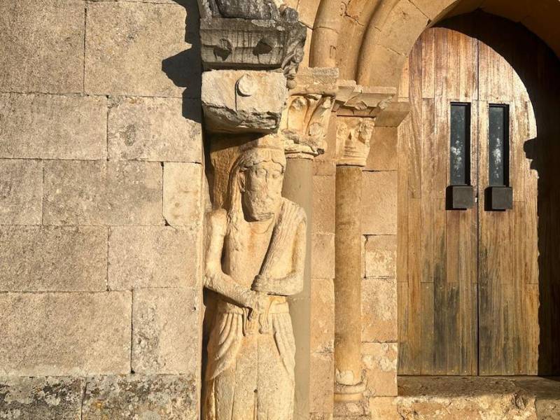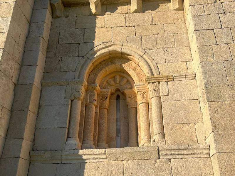 The well-kept outside ornamentation of the windows and the facade with a huge carved figure of Atlas and an enormous chevron that frame and protect the rest of the columns and archivolts is of great beauty.