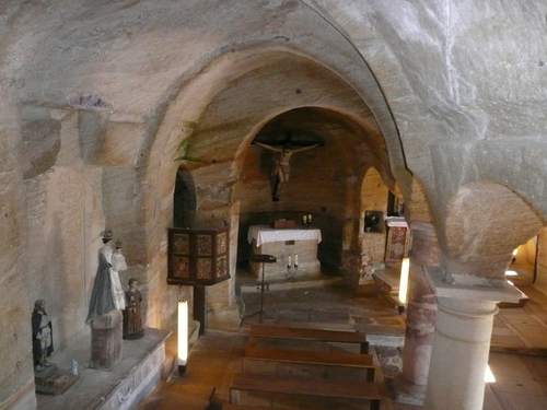 Inside, it follows the same schemes of a Romanesque temple, with two naves topped by barrel vault and its respective apses with the typical quarter sphere. The set is completed by a Sacristy, which is thought it is the oldest part of the temple, and a funeral chapel with an anthropomorphic burial sculpture which is identical to many others in the surrounding area