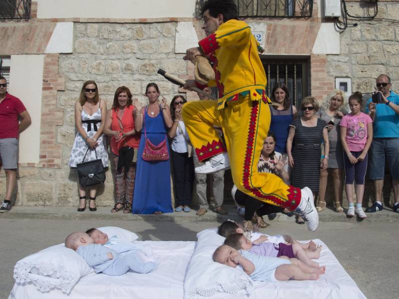 This religious festival with overtones of auto sacramental that takes place in Castrillo de Murcia, is one of the most picturesque festivals in the Burgos calendar, having been celebrated continuously since the beginning of the 20th century. XVII. El Colacho is a burlesque character who represents the devil in an attempt to make Evil triumph over Good. The most spectacular moment takes place at the end of the acts, just when the babies lie on the ground and are blessed to protect them from the evil influence of the Colacho, who takes a run and jumps cleanly over them, subsequently fleeing after having been defeated by the Good.