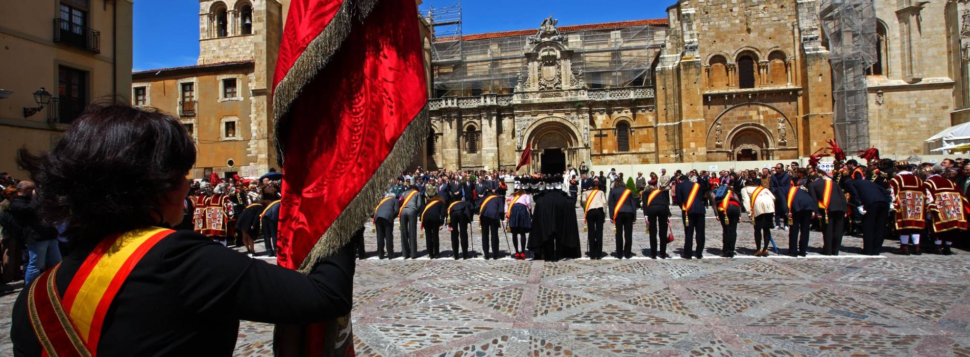 A tradition of the 12th century. After a debate or a discussion between the representatives of the town authorities and those of the Cabildo (Chapter) de San Isidoro, the representatives of the municipal Corporación (Corporation) bow their heads three times to the Cabildo.