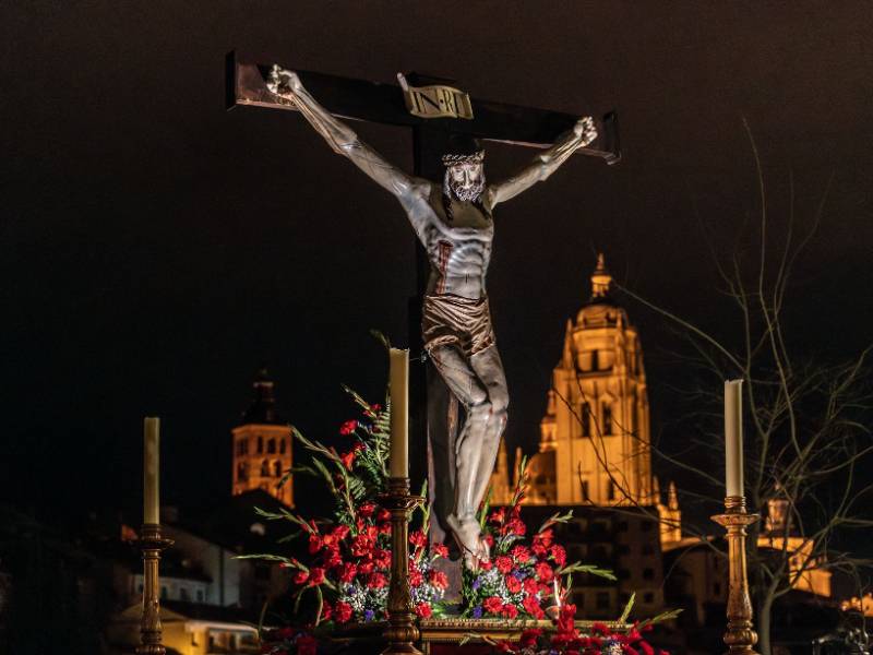 One of the most spectacular events is the procession of the Vía Crucis Penitencial. Among the Segovian processional works of art, one of the oldest is the float of el Cristo de los Gascones which takes part in the Vía Crucis procession in the el Salvador district on the Thursday.