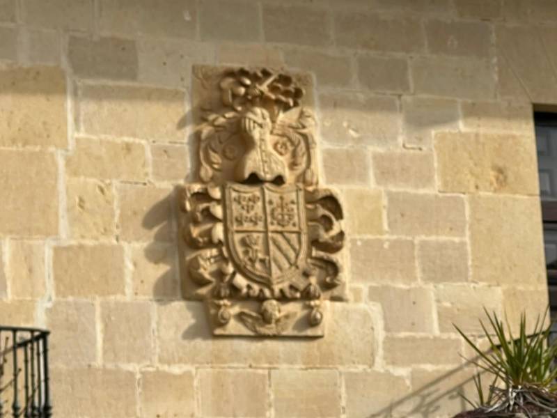 17th-century palace with a niche containing an image of the Virgin Mary and a coat of arms of the Arce-Bustillo family between rampant lions on the facade tower. On the other facades there are large balconies.