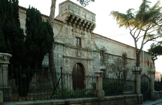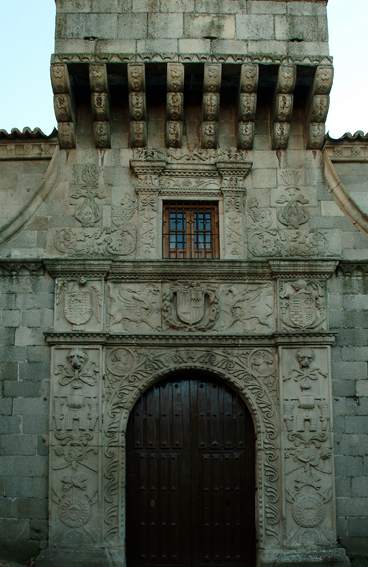 Designed by Vasco de la Zarza, it has undergone alterations leaving its most important parts intact: the façade decorated with shields, griffins and medallions and crowned with a machicolation and the courtyard and its columns in two sections on doric columns, carved lintels, shields, balustrade and Moncloa tile plinths.