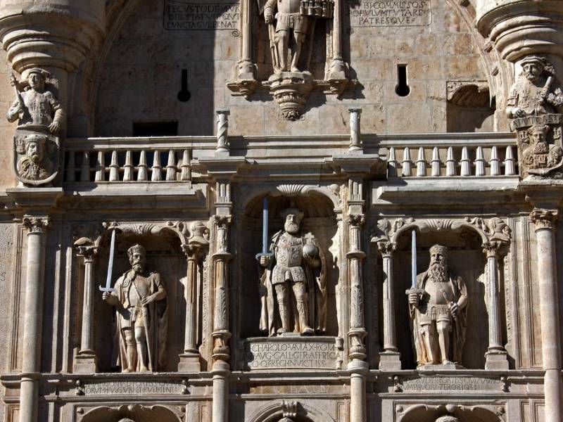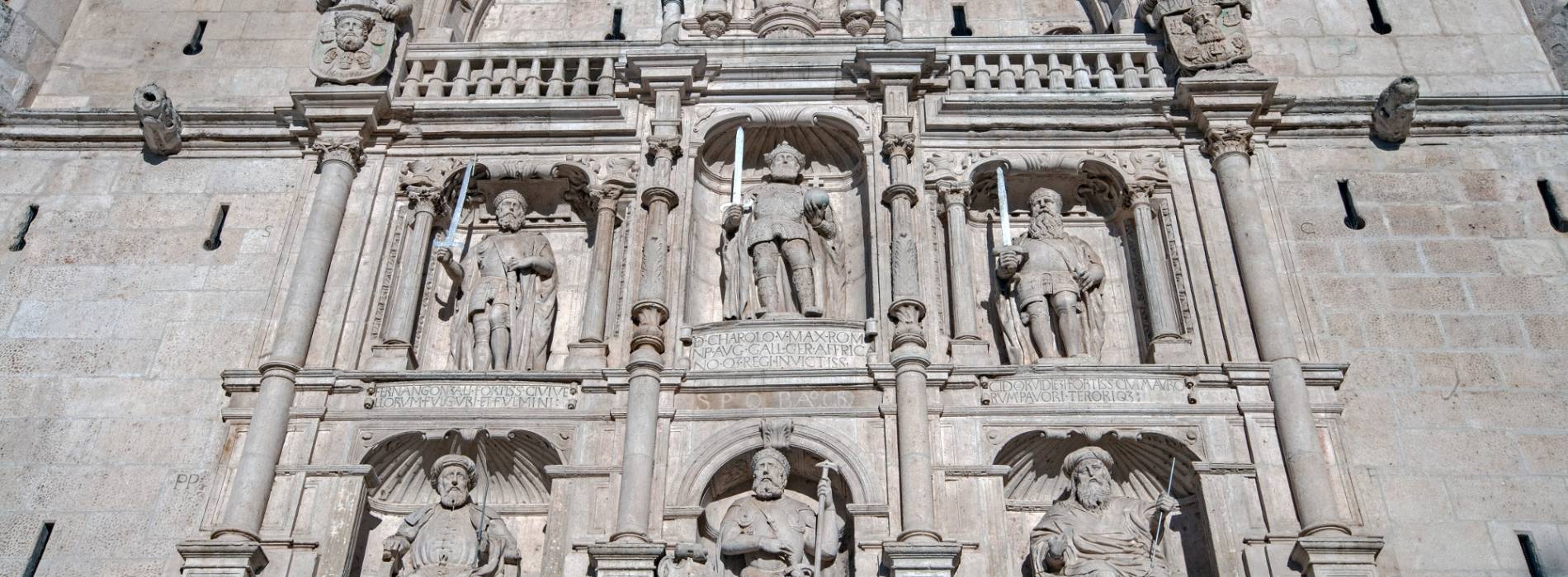Rebuilt in the 16th century by Juan de Vallejo and Francisco de Colonia as a triumphal arch. It shows the Emperor Charles V surrounded by the most important people in the history of the city and Castilla.