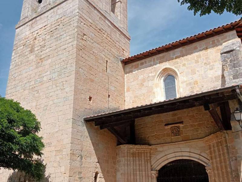 Templo gótico de entre los siglos XI y XIV, que reutiliza elementos de la iglesia anterior. Dedicada a la Virgen del Rosario, patrona de Medina de Pomar, desde 1571, está distribuida en tres naves, siendo la central más ancha.
