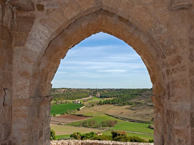 À une extrémité des montagnes Torozos et dominant la campagne de Valladolid , se trouve la charmante ville d' Urueña.