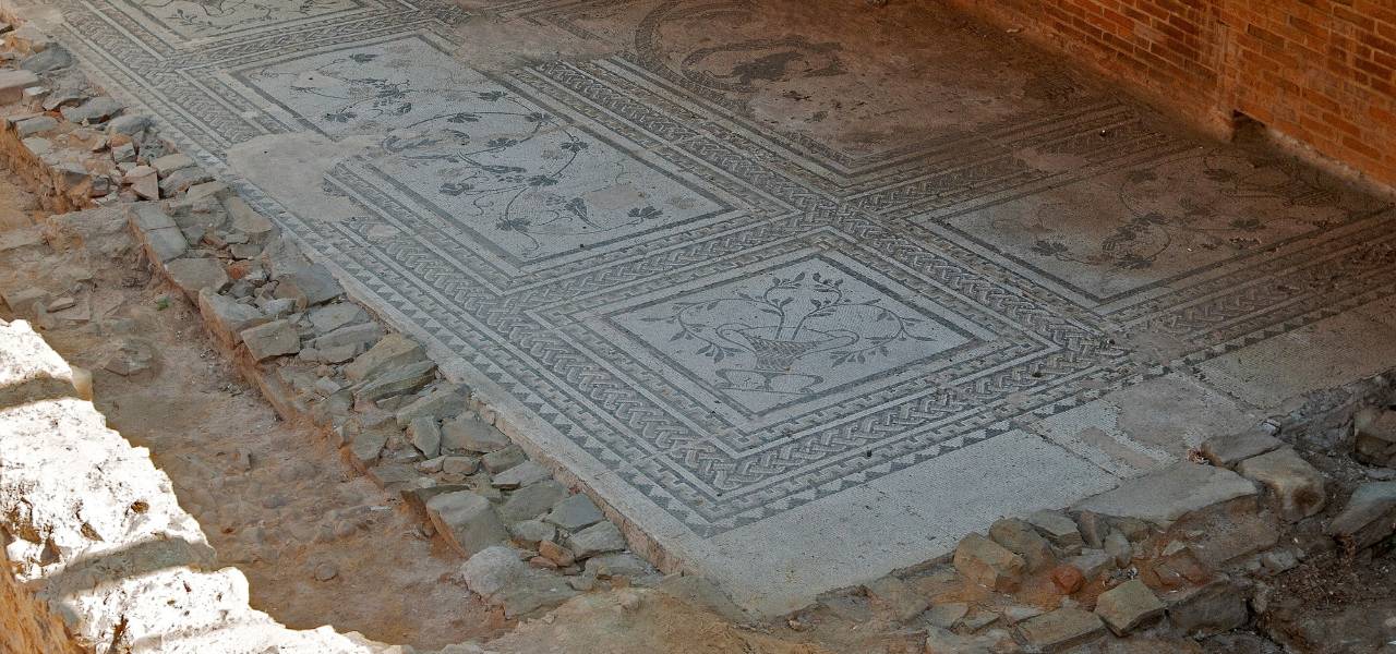 La Domus del Mosaico del Oso y los PájarosMás informaciónEn las inmediaciones del foro y en una de las zonas más soleadas de la ciudad se conservan los restos de una vivienda que debió de pertenecer a una familia de cierto nivel económico, como parece indicar...