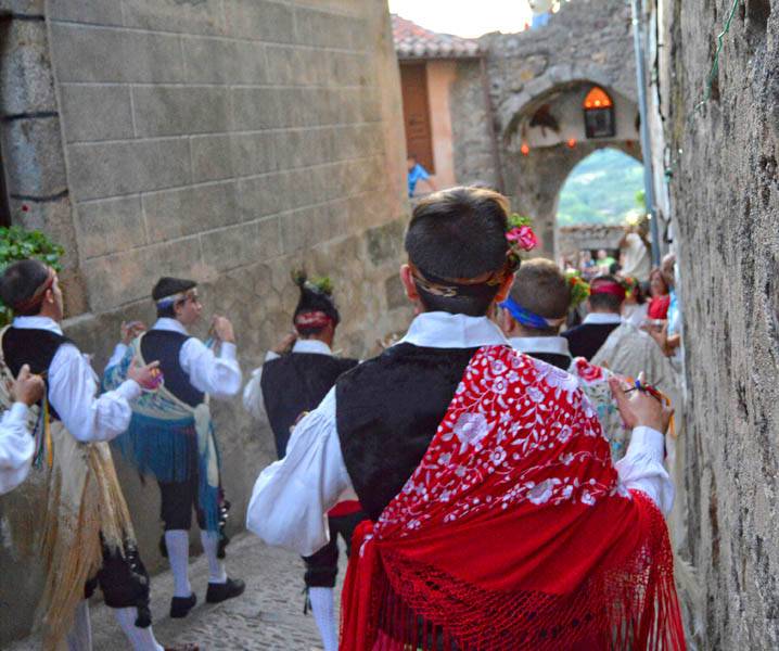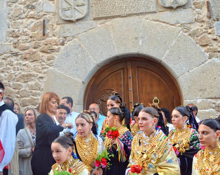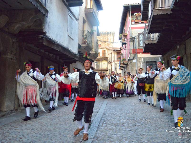 Da Prefeitura a festa dos dançarinos com suas roupas tradicionais, e das mulheres, com seus espetaculares vestidos típicos de Miranda del Castañar, com suas joias, xales de Manila, flores, penteados tradicionais, e assim por diante.