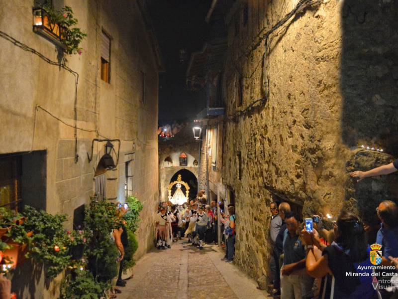 Depois da Eucaristia celebrada a eucaristia dos cantos da véspera, uma multidão aglomera-se em frente ao átrio da ermida para testemunhar um ritual preservado durante séculos, no início da procissão da Virgem da Cuesta (a imagem, do XIII, é retirado da ermida) e continuam passo a passo e ao ritmo das danças serranas e do som das castanholas, pelas ruas estreitas da tradicional monumentalidade da vila e à luz das lanternas e lamparinas que as adornam e aqueles que se penduram em inúmeras varandas e janelas privadas, até chegar à igreja paroquial, onde na manhã do dia seguinte será homenageado com danças e oferendas.