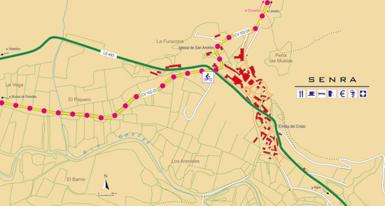 A rota sai de El Castillo para chegar a Vegarienza. Aqui se retorna por uma trilha que sobe até Valbueno, onde o percurso retorna ao asfalto para descer até Omañón e pegar a estrada que atravessa Valle Chico. Depois partimos para Senra de onde partimos em direção a Murias. Uma vez em Murias, o percurso continua até chegar a El Villar de Santiago. A partir daí descemos em direção a Villaseca e no trecho final subimos até Robles de Laciana para descer até Rioscuro e terminar em Villablino.
