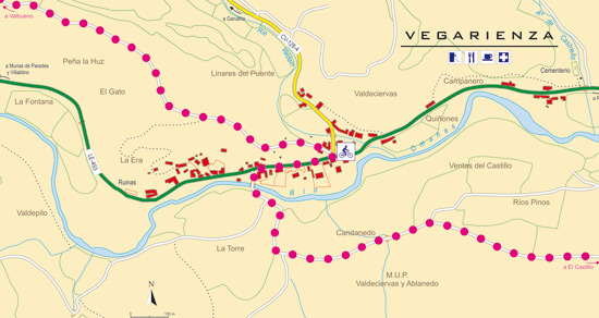 Depuis El Villar de Santiago, l'itinéraire se dirige vers Villaseca de Laciana. Juste avant le changement de pente, il y a un croisement avec une route goudronnée qui nous mène aux environs du sanctuaire de Notre-Dame de Carrasconte pour aboutir à Villaseca de Laciana. Une fois sur place, l'itinéraire monte jusqu'à Robles de Laciana pour descendre vers Rioscuro. Enfin, nous suivons la route principale pour terminer le parcours à Villablino.