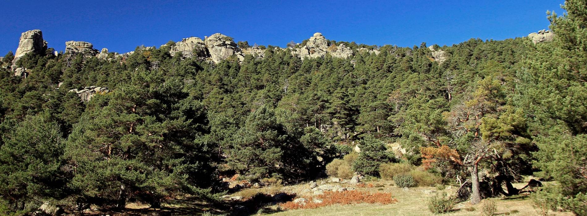 O caminho começa na localidade de Valsain e sobe até Cruz de la Gallega, para continuar pela trilha florestal de Pinar de la Acebeda....