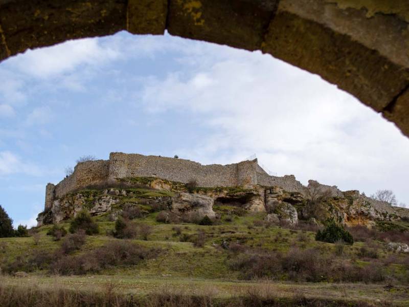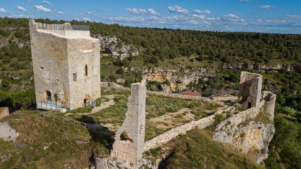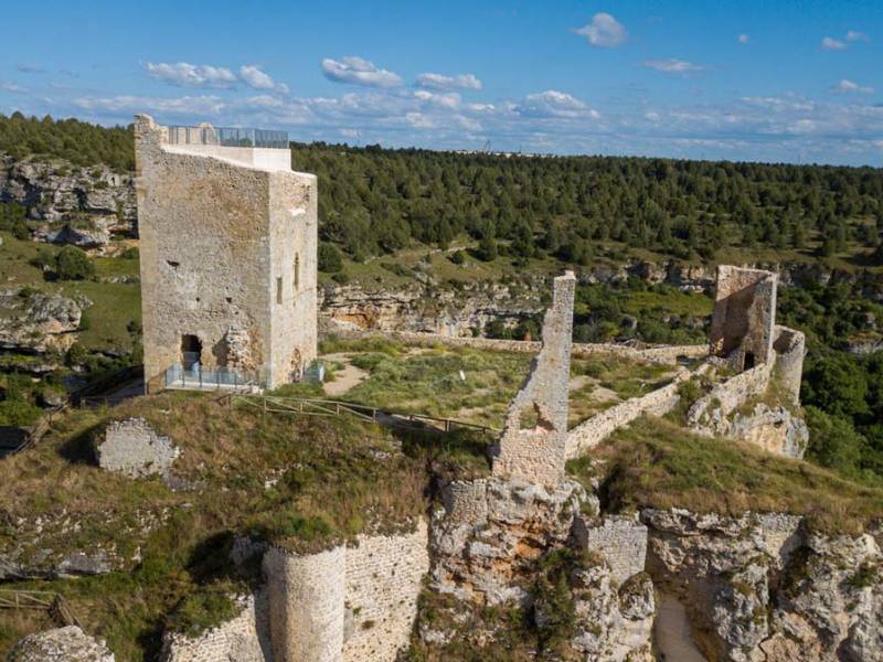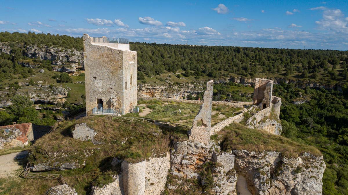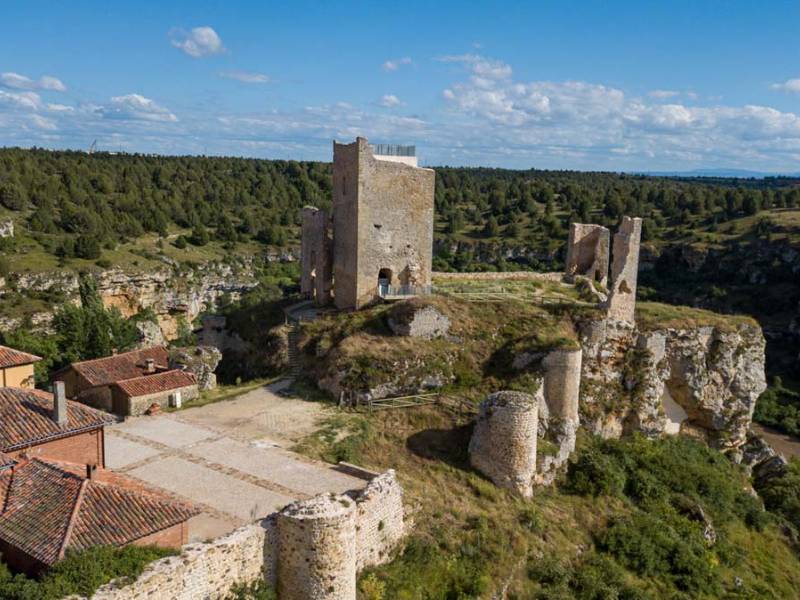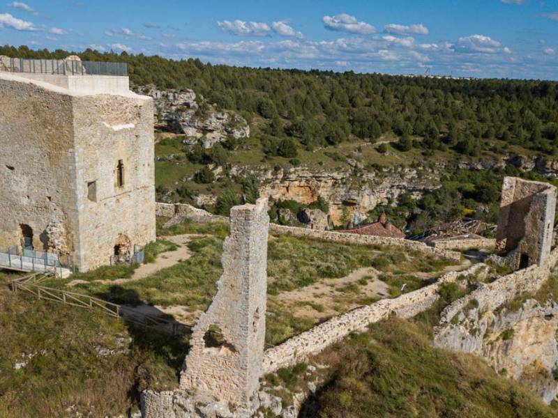 El castillo, del siglo XII, fue reformado en el siglo XIV. En estado de ruina consolidada, conserva algunos lienzos y parte de la torre del homenaje desde dónde se pueden alcanzar unas vistas impresionantes. Por el lado noroeste, el más sensible de la fortaleza, cuenta con un foso, mientras que por el valle de la Sangre la propia altura de los riscos ofrece una protección suficiente.