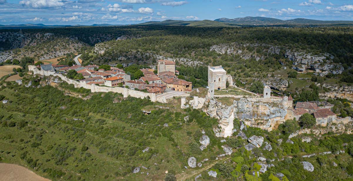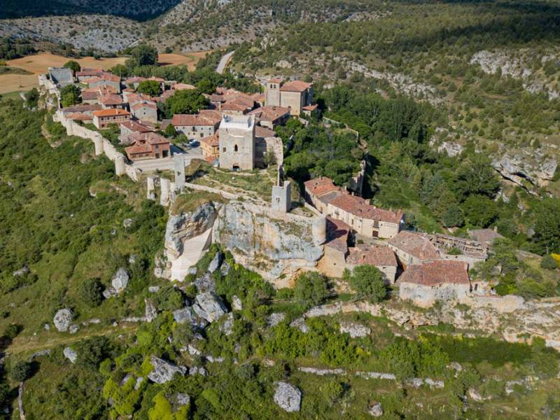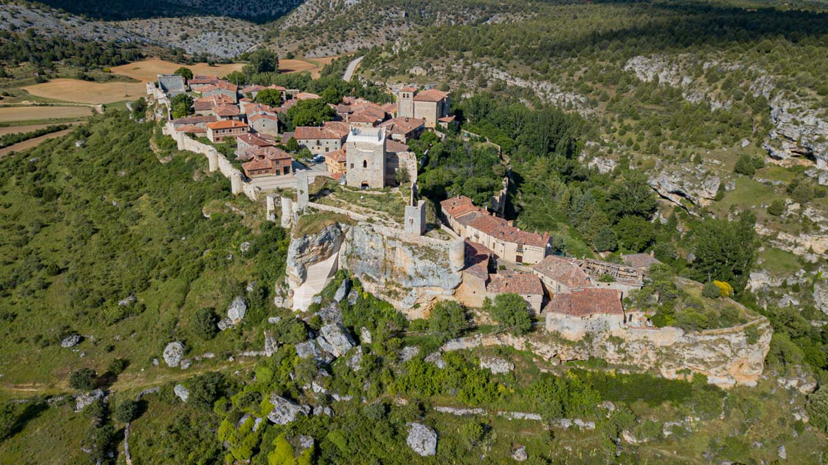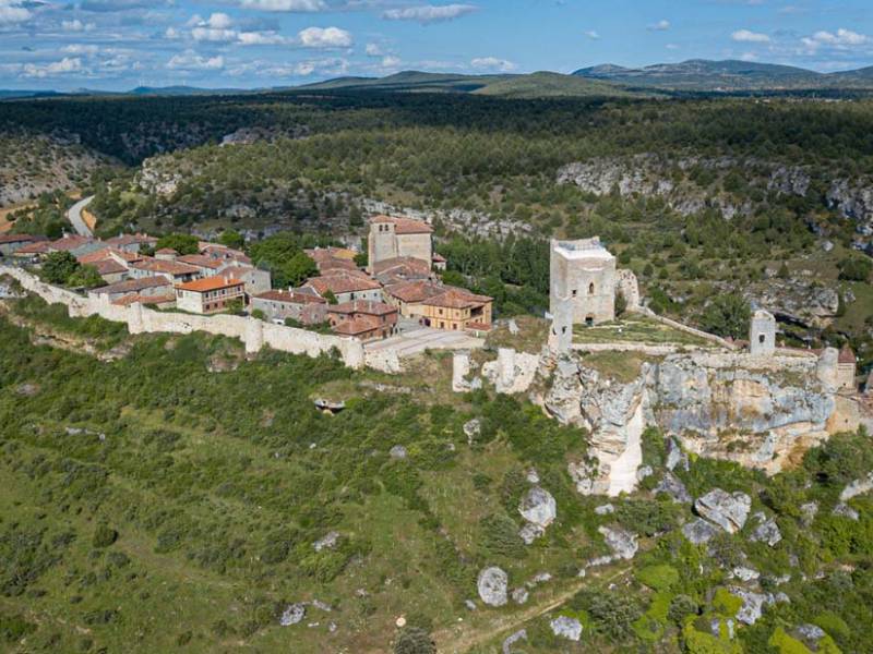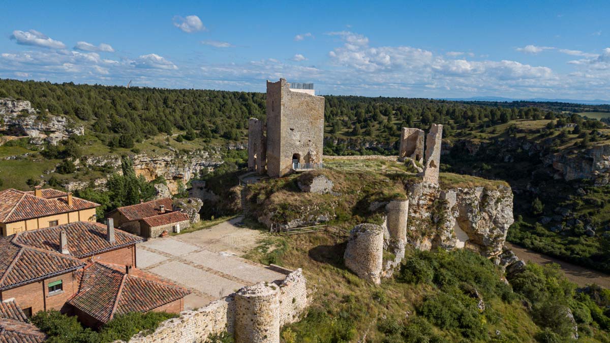 El castillo, del siglo XII, fue reformado en el siglo XIV. En estado de ruina consolidada, conserva algunos lienzos y parte de la torre del homenaje desde dónde se pueden alcanzar unas vistas impresionantes. Por el lado noroeste, el más sensible de la fortaleza, cuenta con un foso, mientras que por el valle de la Sangre la propia altura de los riscos ofrece una protección suficiente.