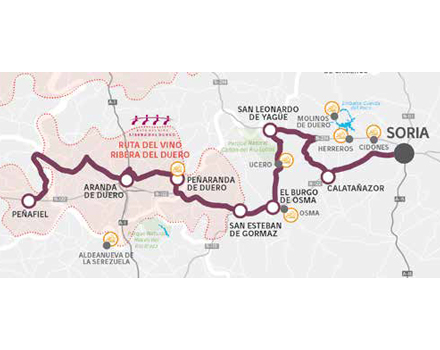Saindo de Sória chegaremos a Calatañazor, com o ambiente medieval que exala o seu traçado e os seus edifícios tradicionais. Saímos momentaneamente do curso do Douro para chegar à N-234, em direção a Burgos, e na altura da localidade Sória de San Leonardo de Yagüe descemos em direção à localidade de Ucero e ao Cânion do Rio Lobos. As estradas não são excessivamente complicadas e aqui as paragens e passeios têm precedência sobre a moto.