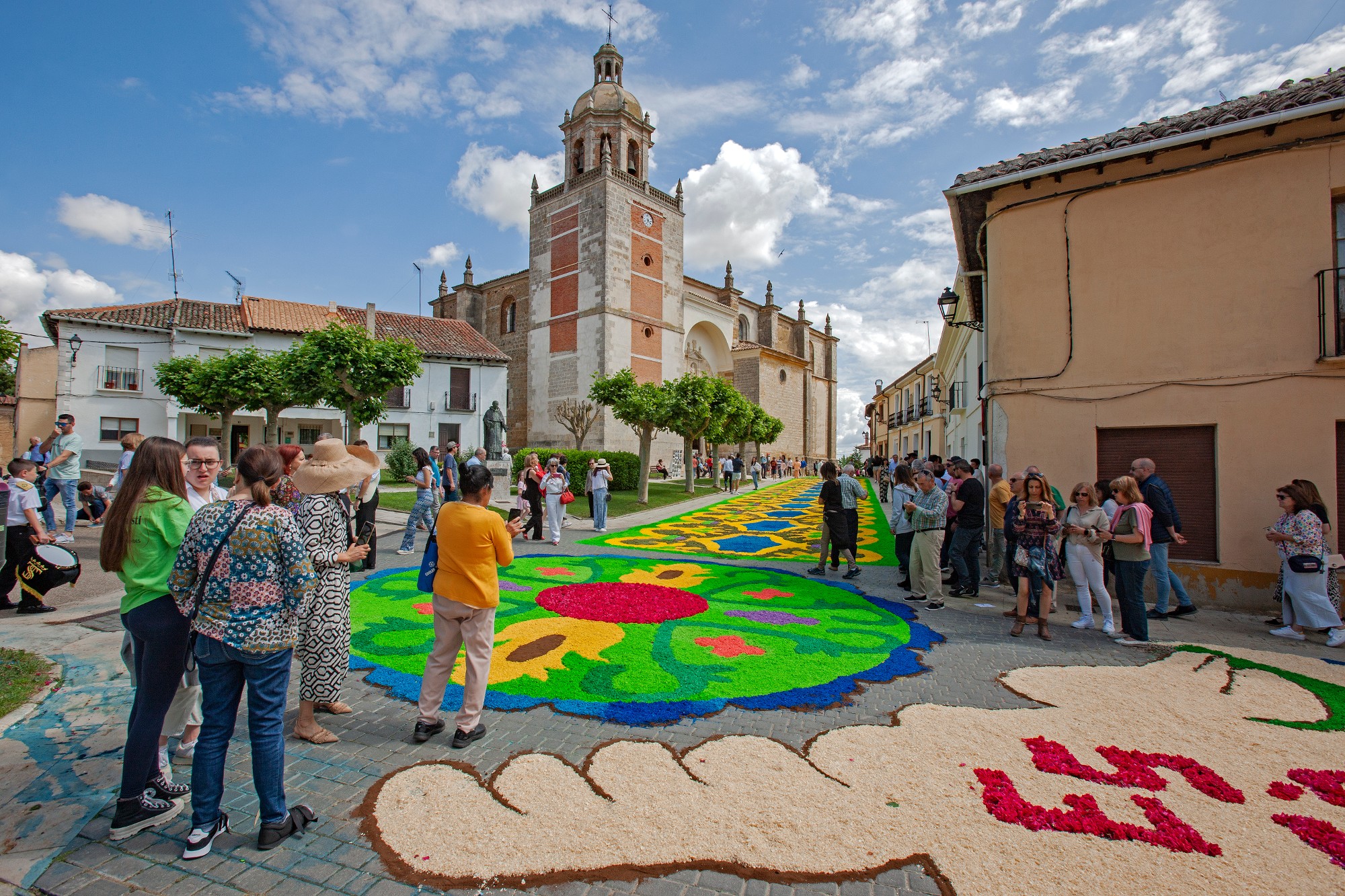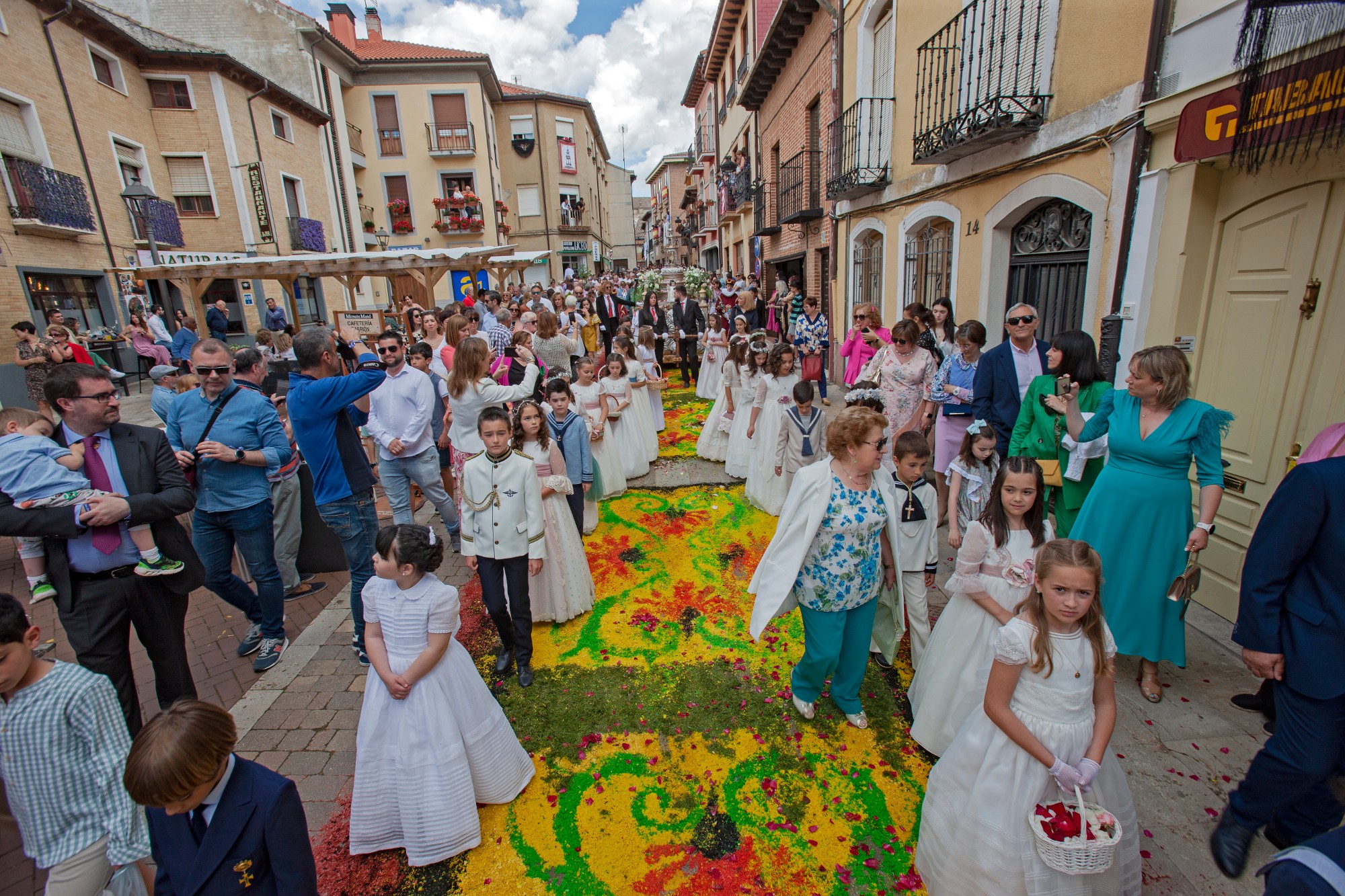 Le printemps inonde la ville de Carrión de los Condes de couleurs. Lors de la fête de la Fête-Dieu, les habitants de Carrión décorent les rues d'un grand tapis de fleurs naturelles de plus d'un kilomètre et demi de long, le long duquel circulera plus tard la procession conduite par le Chariot Triomphant. Toute la ville est impliquée dans cette manifestation artistique et culturelle, enfants, jeunes et adultes qui, de manière désintéressée, réalisent ces belles tapisseries florales.