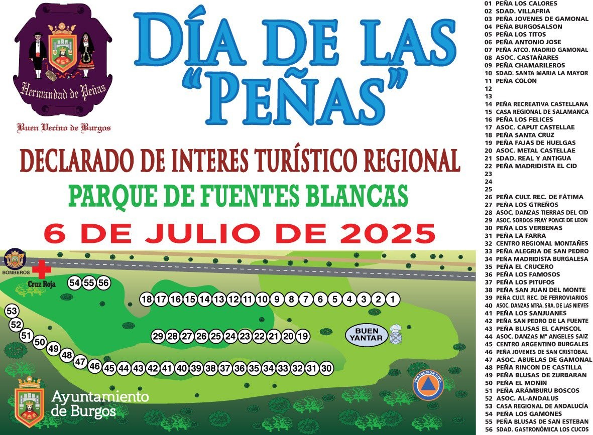 标志着布尔戈斯守护神节的结束。该节日已被宣布为卡斯蒂利亚-莱昂的旅游胜地。每年,数千人都会聚集在距市中心约五公里的 Fuentes Blancas 公园,举行"怀念行动",缅怀所有远离家乡的布尔戈斯人。