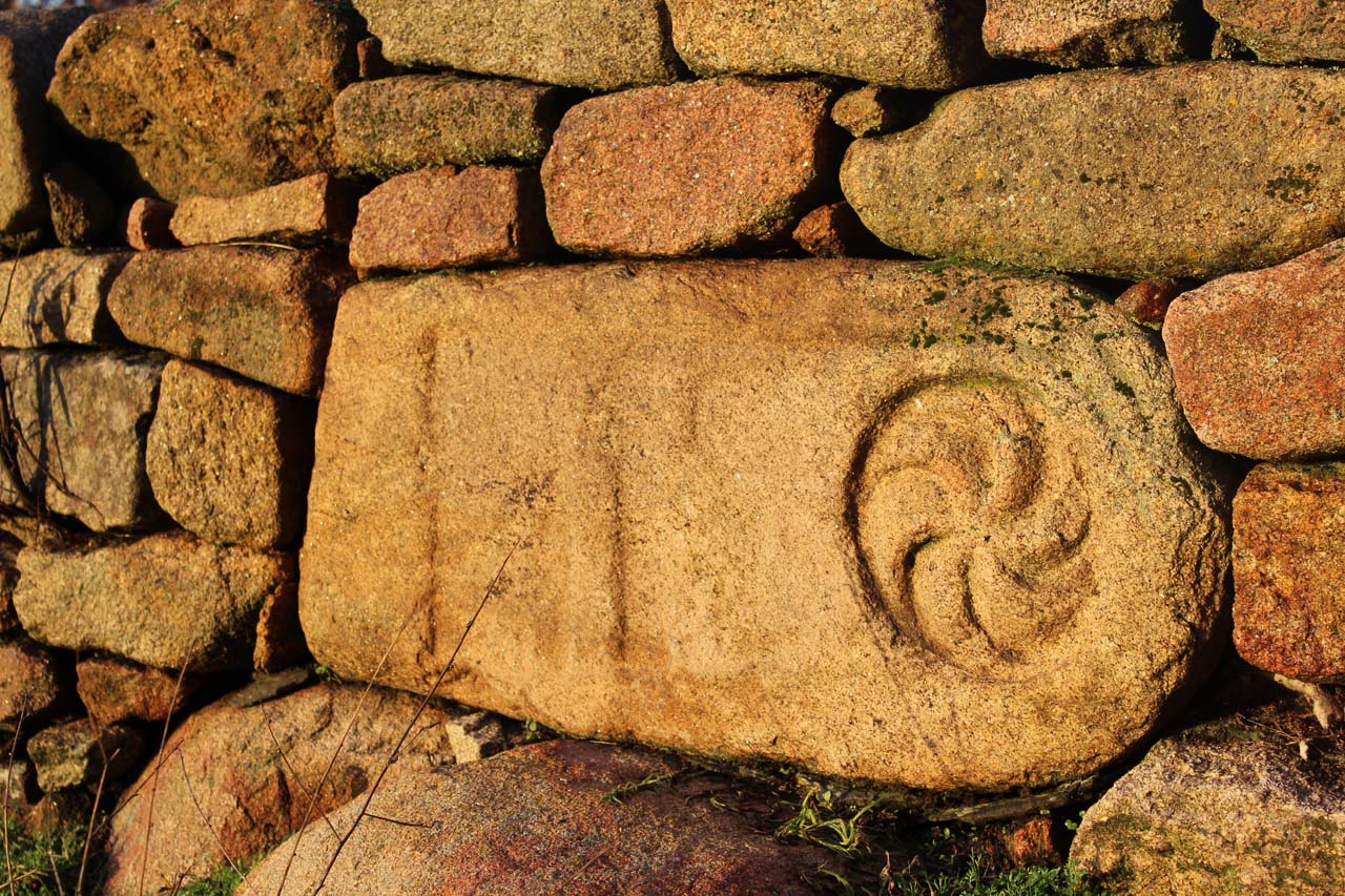 一组雕刻品保存完好,既刻在岩石上,也刻在墙上的小方石上。这些雕刻品描绘的是马和其他动物。人物形象几乎不露面:一幅狩猎场景,其中,一些手持长矛的骑手正在骚扰一些野猪。