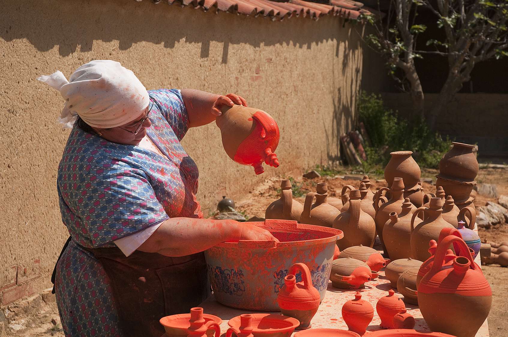 Dans le Musée Alfar on travaille de manière ancestrale, on suit les modèles historiques, l’extraction de l'argile du boueux sol, le séchage, les outil pour pétrir la boue, ou la création des ustensiles sur un tour traditionnel, recréant les poteries traditionnelles qui ont donné de prestige aux potiers jiminiegos.