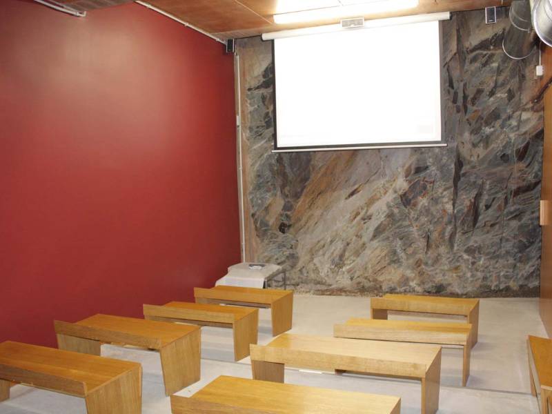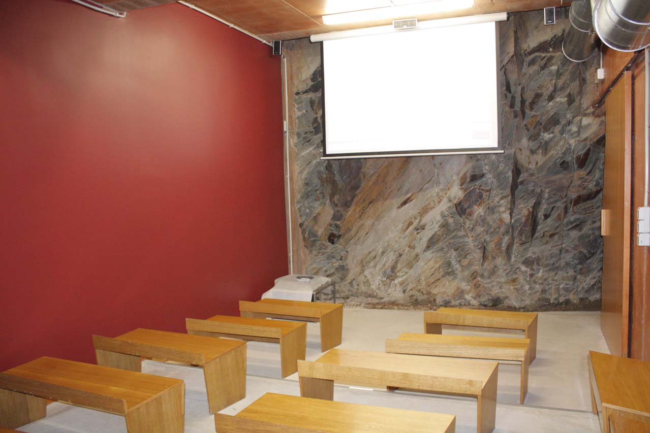 El Aula se encuentra en un edificio de nueva planta, excavado en la roca natural. En la sala central se pueden observar paneles iluminados en los que se ofrece una explicación sobre el mundo paleolítico a través de dibujos, gráficos, textos y vitrinas con réplicas.