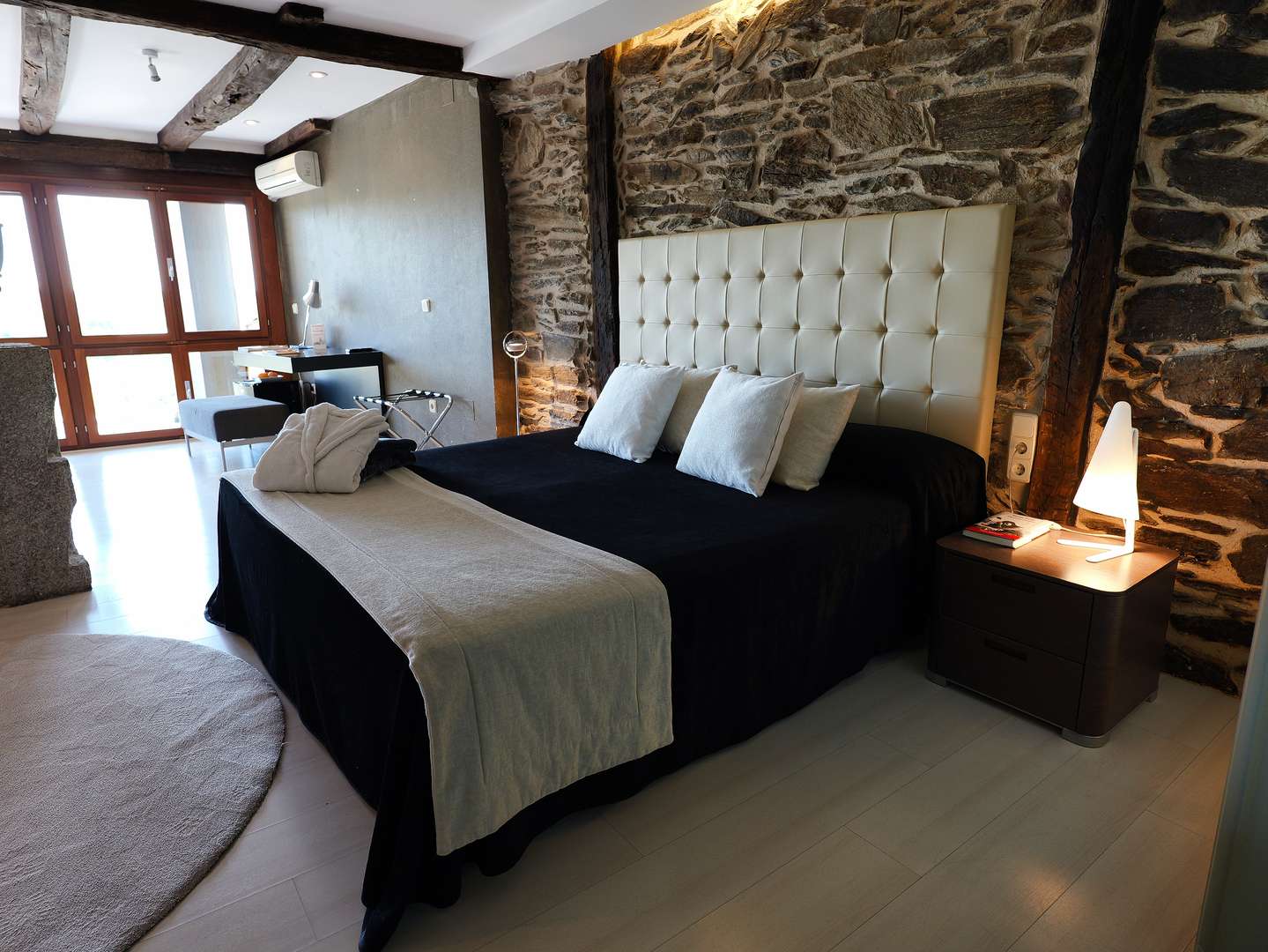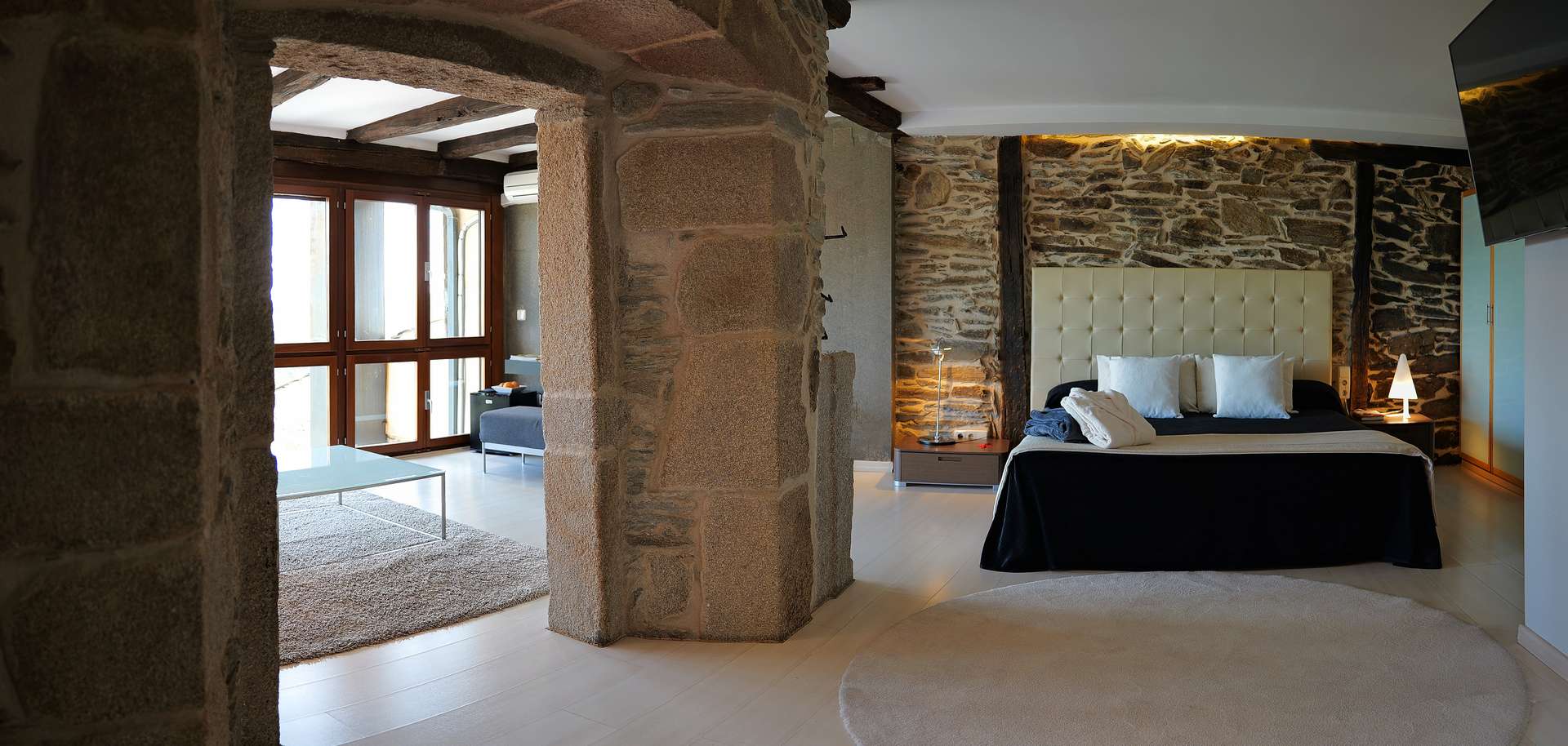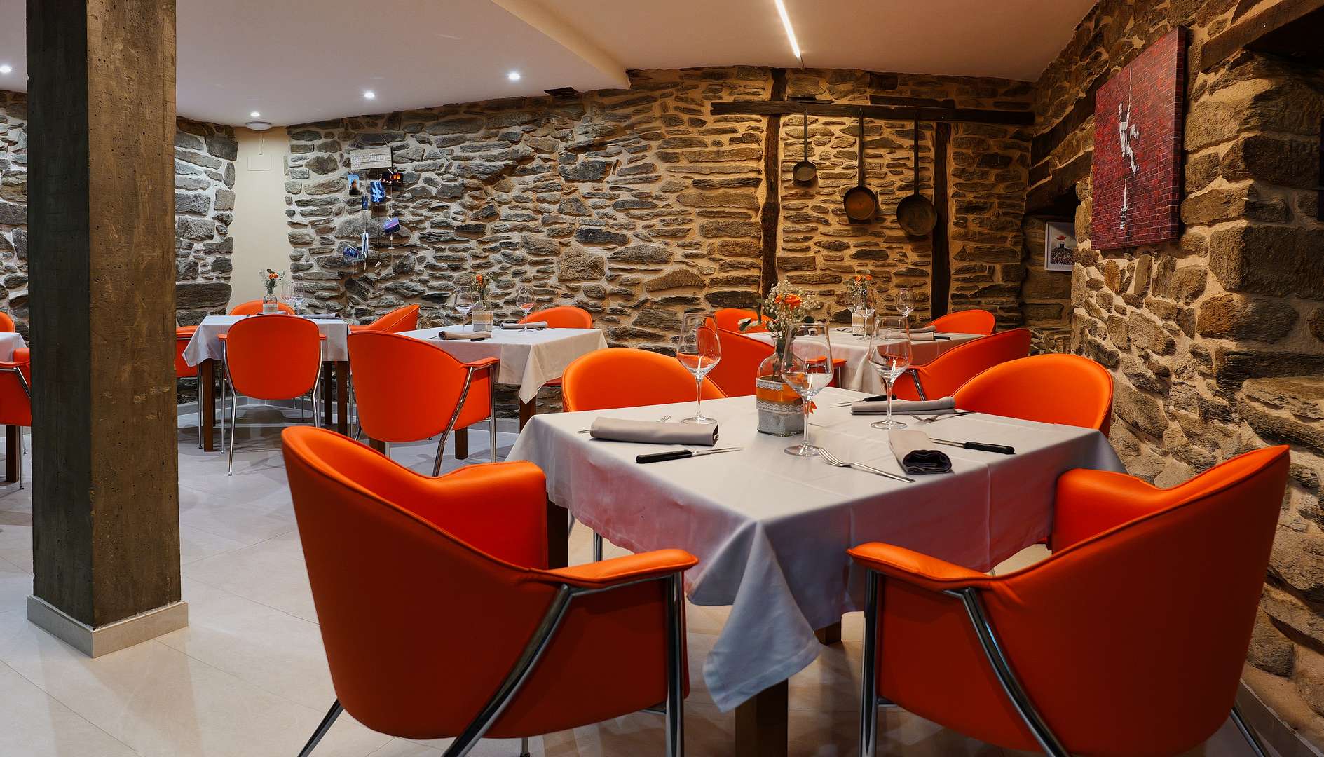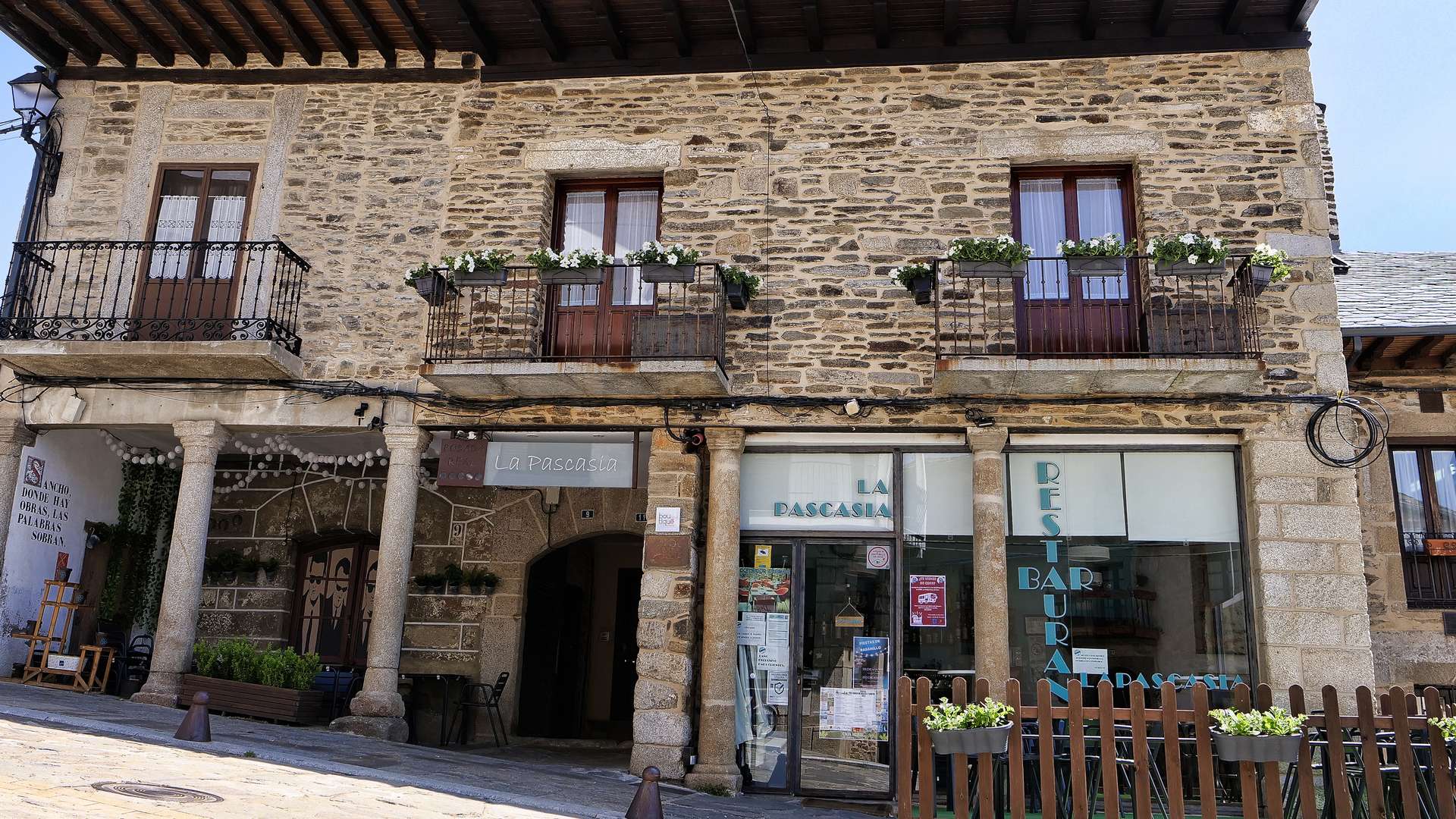 La Pascasia finds itself in an arcaded building from the 17th century that was formerly an old Castilian guest house. Its refurbishment retained some of its original features such as its stone walls and beams whilst combining the most modern and innovative structural and decorative elements such as heated floors and an original light that hangs in the stairwell.