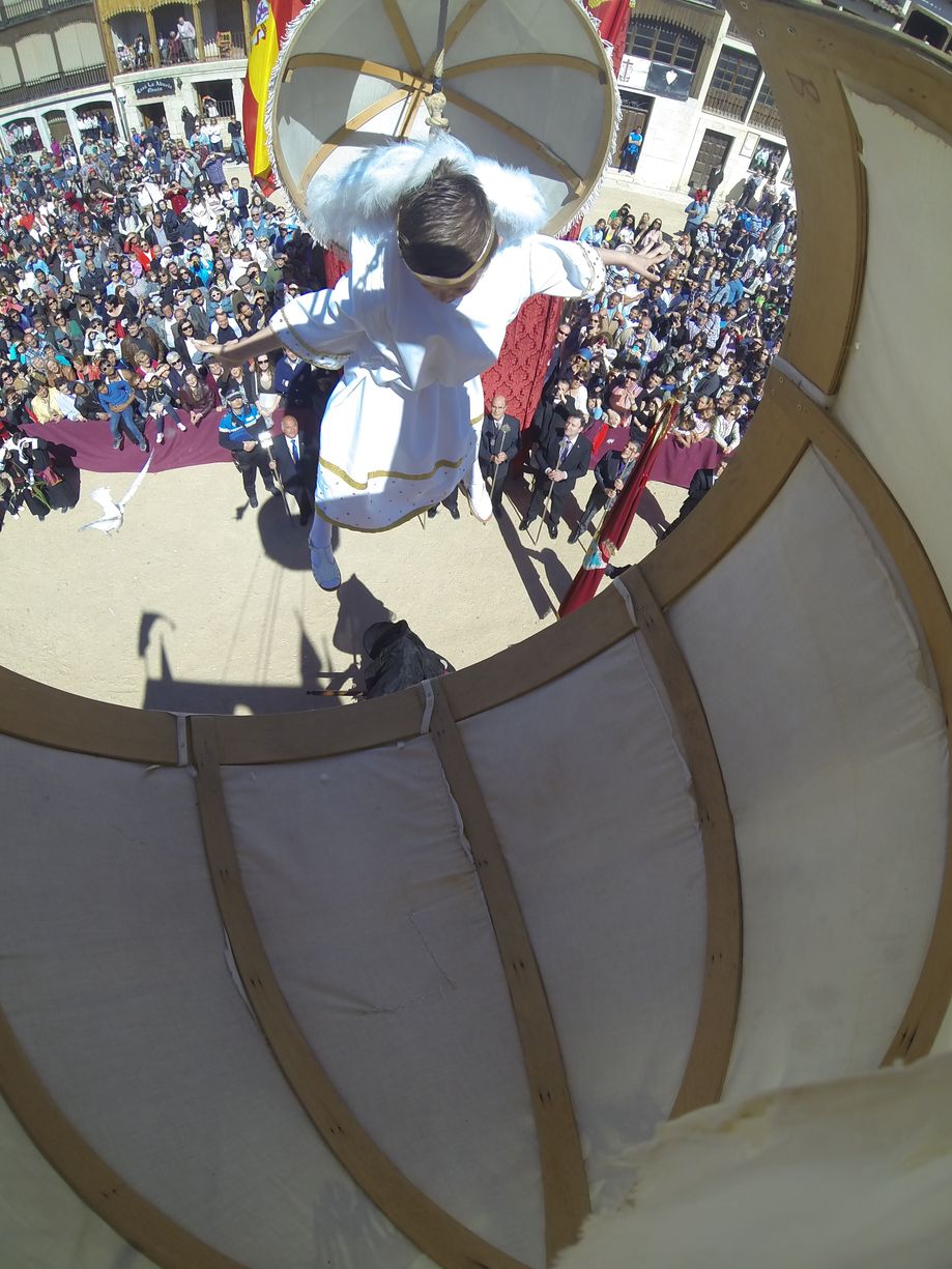 圣周期间举行的一系列游行和礼拜活动最终以一项几乎独一无二的传统达到高潮:天使游行。这种象征基督复活的仪式在整个西班牙只有两个地方举行,分别是Aranda de Duero和纳瓦拉河畔图德拉。有 18 世纪的文献记载了这一仪式,但它肯定更古老,与其他宗教仪式一样,可以追溯到特伦托会议之后的冲动。