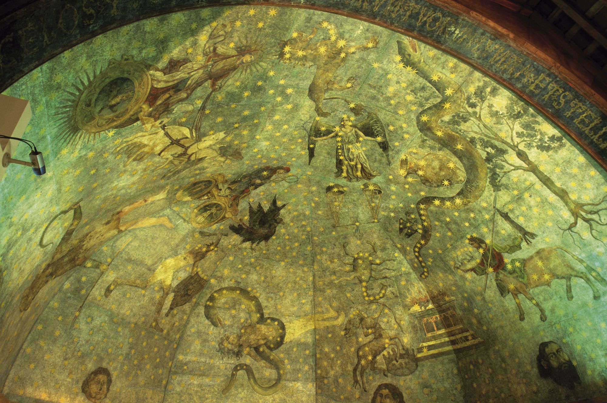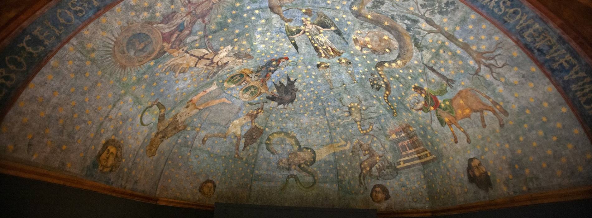 Y en el zaguán, un escudo universitario representando una cátedra académica con las armas de Castilla y León. En una de sus salas puede contemplarse el denominado Cielo de Salamanca.