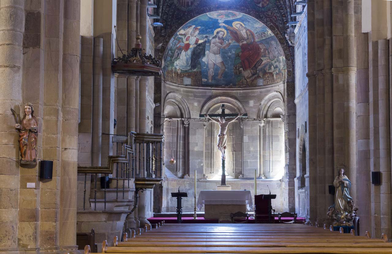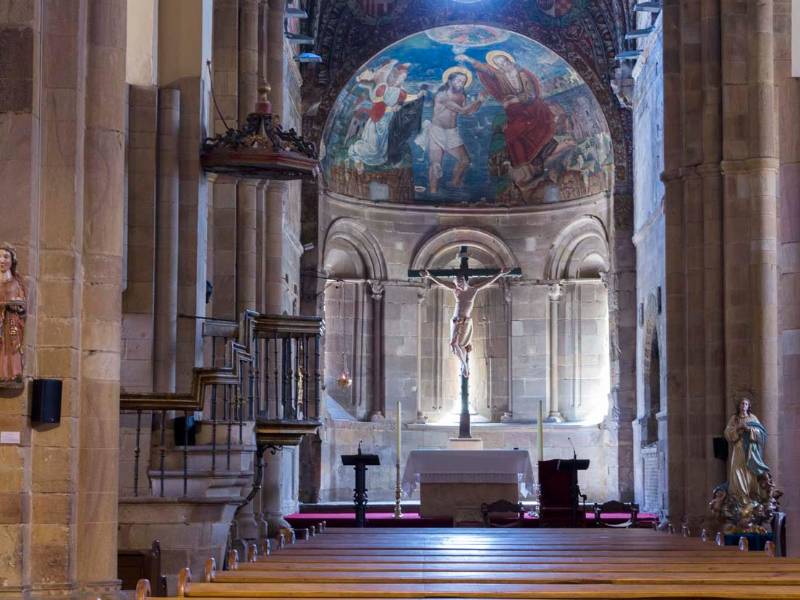 En el interior de la iglesia destacan las pinturas del ábside central, alusivas al bautismo de Cristo.