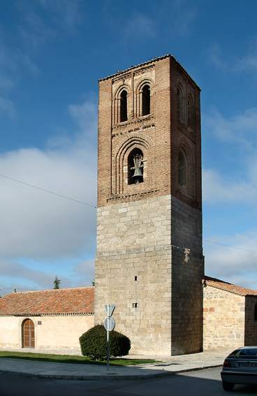 On remarque la tour avec son soubassement en pierre de taille et le corps supérieur en briques avec des fenêtres aux arcs outrepassés en ogive, tablettes et frises d'angles d'inspiration mudéjar.