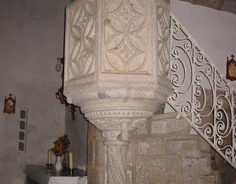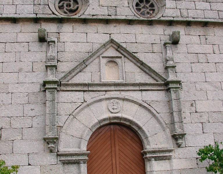 La iglesia, construida en granito, consta de dos partes bien definidas: la capilla mayor, del siglo XIII y uno de los pocos ejemplos del gótico más antiguo de la provincia, y las naves, añadidas en una reforma realizada en el siglo XVI.