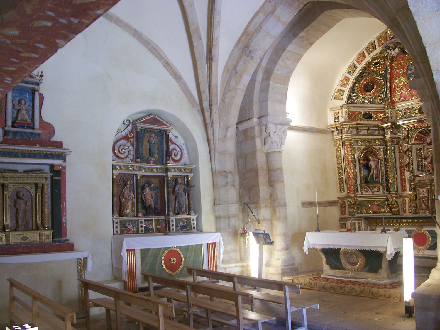 Les chapiteaux sont chargés de fioritures et comportent des cimaises décorées de rejetons et de branches végétales. Celui de l'Épistole représente le célèbre 'David entre los leones', qui rappelle le sculpteur de Lebanza.