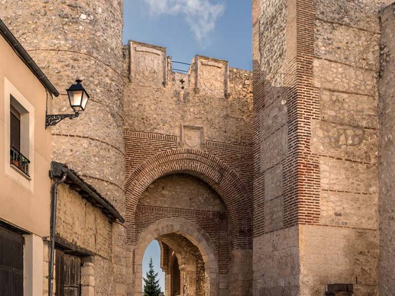 Arco del siglo XII del primer recinto amurallado, que era la puerta norte de salida de la ciudad. Forma una pequeña fortaleza flanqueada por un cubo torneado y un torreón de planta rectangular, y entre ambos un adarve sobre arco de triple anillo.