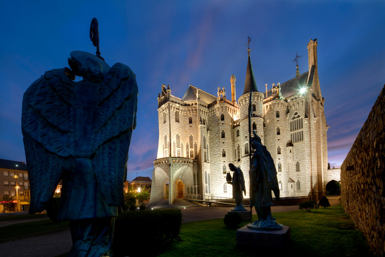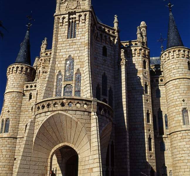 Projetado por Antonio Gaudí após o incêndio que destruiu o antigo palácio episcopal de Astorga em 1886, é um edifício neogótico modernista que reúne formas típicas de uma mansão senhorial, um castelo e um templo. O próprio Gaudí dirigiu as obras até 1893, ano da morte do Bispo Grau. Quando os abandonou, a construção já dava para o terceiro e último andar (o quarto, contando o subsolo).