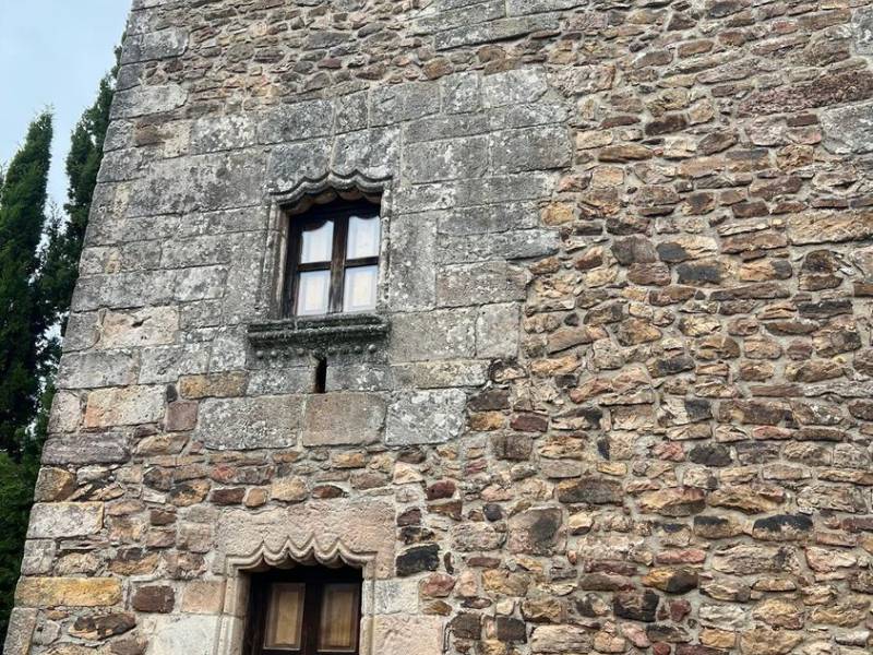 Cette tour de quatre étages, attachée à ce qui autrefois était un palais, est carrée et construite en maçonnerie. Un endroit avec peu de fenêtres, où la plus frappante garde partie de son décor. Tout recouvert d’un toit en croupe pris appuyé sur une console. Au centre de chacun des tableaux ressortent deux chiens aux fins décoratifs.