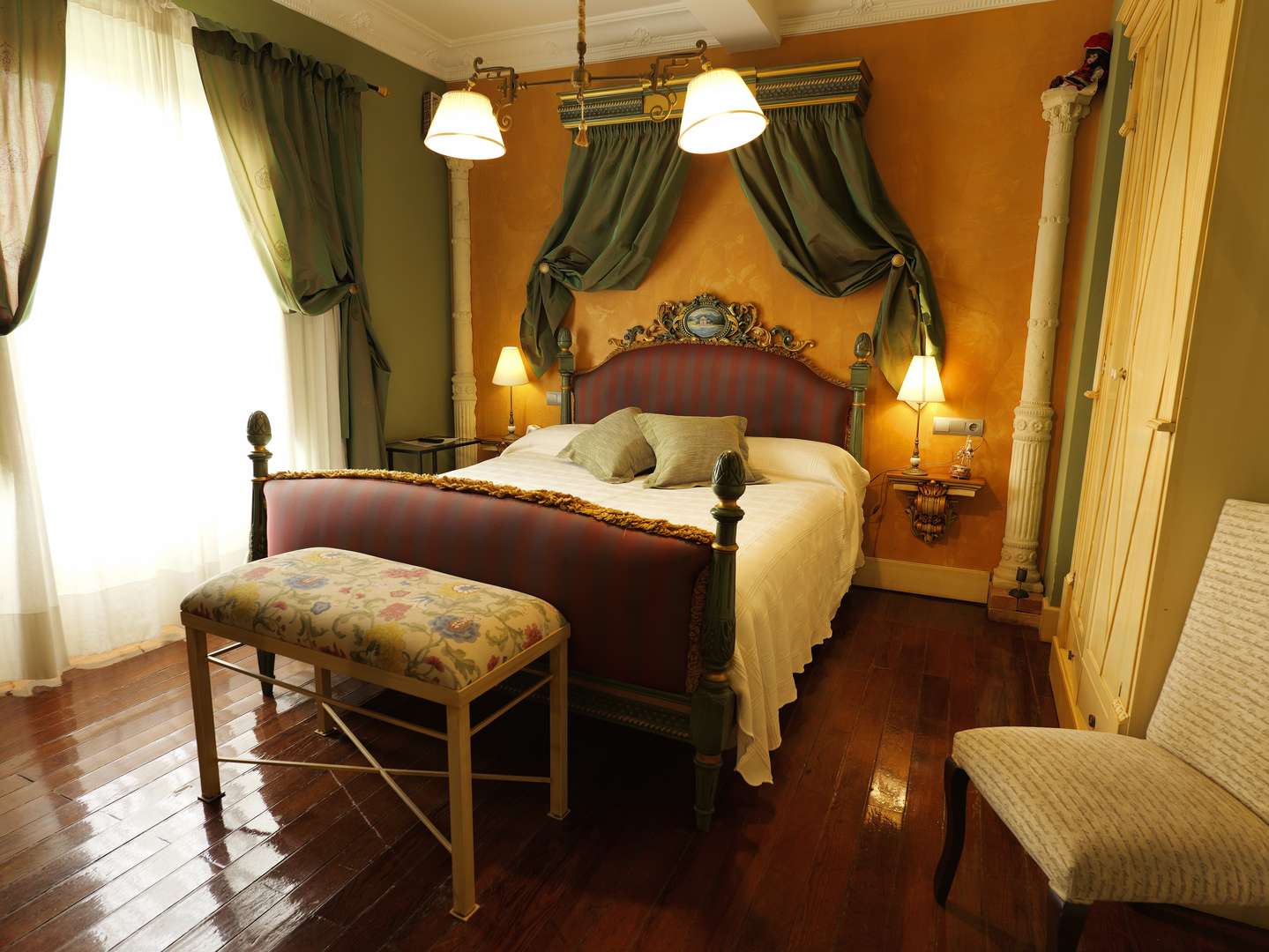 进入旅馆后,您会仿佛回到 1900 年,同时又保留了现代生活的所有舒适设施。旅馆分为两层,设有带壁炉的休息室以及酒吧,酒吧完全复制了阿根廷的 Sociedad Filantrópica Hijos de Cidones酒吧。Posada del Indiano 旅馆占地 2,000 平方米,园景花园内设有一个露台,露台上覆盖着大型铸铁圆顶。