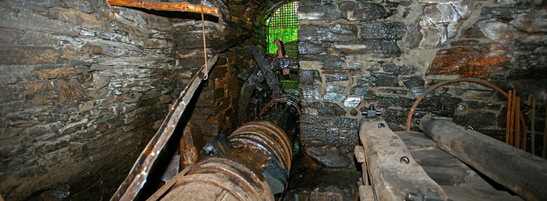 铸造厂的用水系统虽然精巧,但还很简陋,这突显了铸造厂的独创性。在砖石结构中竖立着一个平行于活动区域的水流通道。由于文丘里效应,水流的力量使水流向上流动,将锻炉的火烧尽。