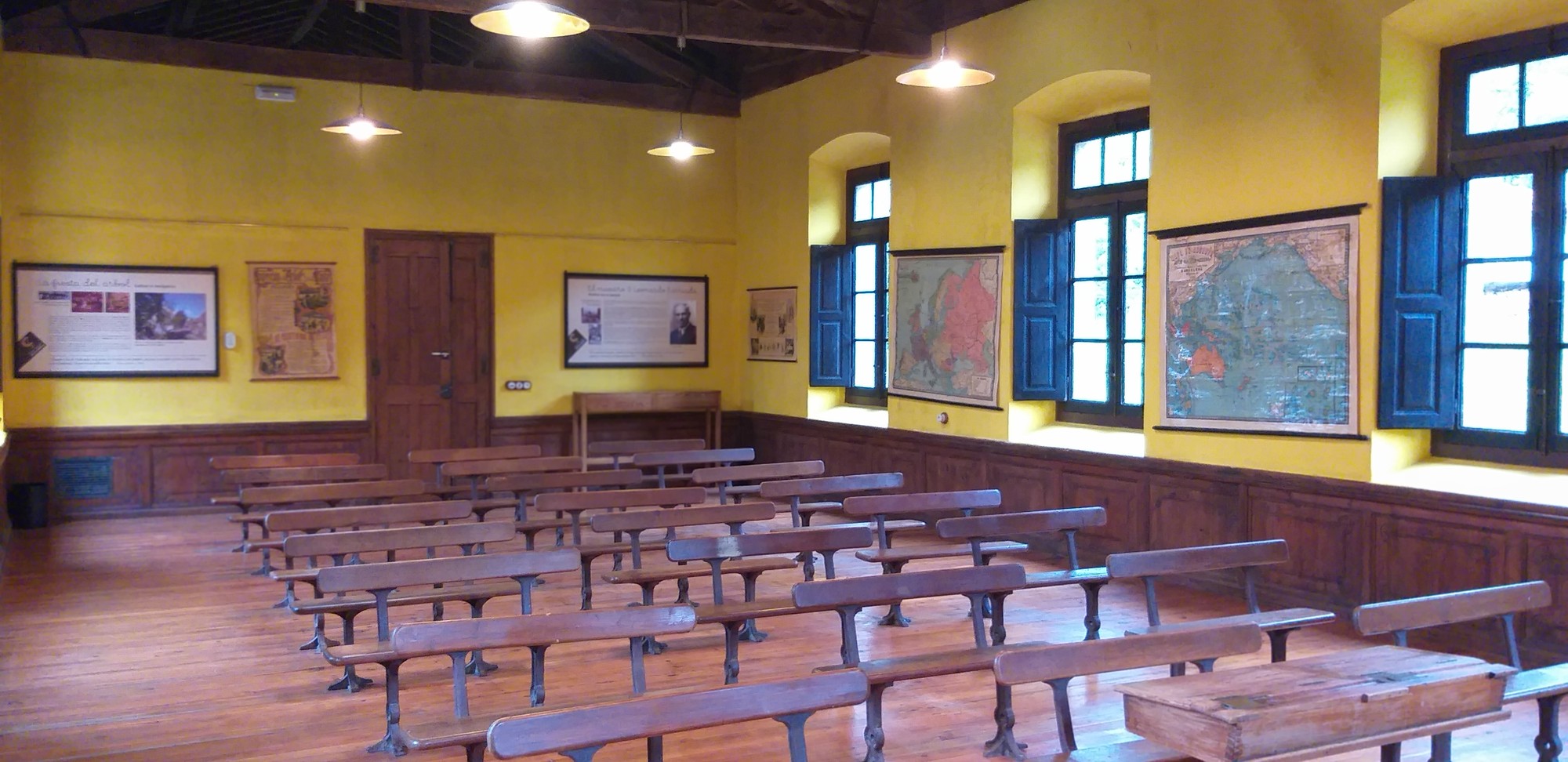 Elle est répartie sur deux étages et d'autres salles annexes, qui correspondent à la distribution originale des espaces de l'école. Au rez-de-chaussée se trouve la salle de classe d'éducation de base, où les plus jeunes enfants recevaient une éducation de base ; et des ateliers de formation pratique dans différentes disciplines et métiers. Au premier étage se trouve la salle de classe d'enseignement supérieur, également enseignée à Soto ; et le véritable protagoniste de l'école : le cabinet des sciences, où sont conservés toutes sortes d'appareils, d'instruments et de collections, destinés à permettre aux élèves de s'informer sur les avancées scientifiques et techniques du début du XXe siècle.