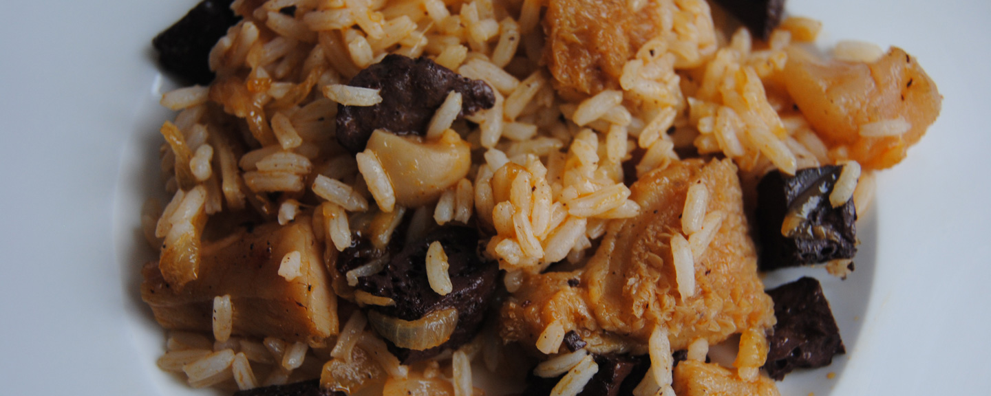 Cuando empiece a hervir de nuevo se le echan las manitas, los callos y la sangre cortada en dados, dejándolo cocer unos cinco minutos para que se integre todo, en ese momento podemos añadir el arroz y se deja a fuego bajo durante unos 15 minutos.