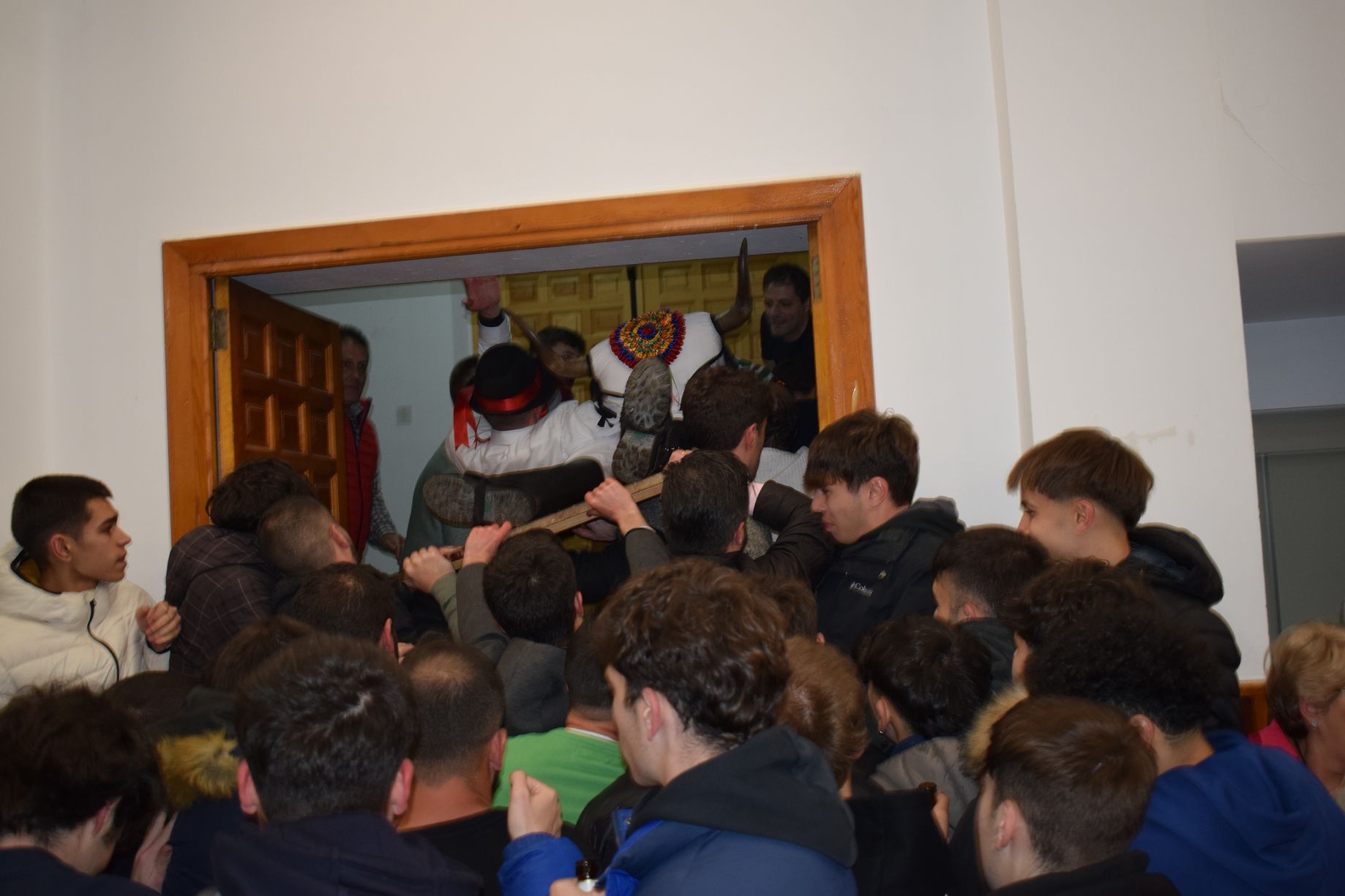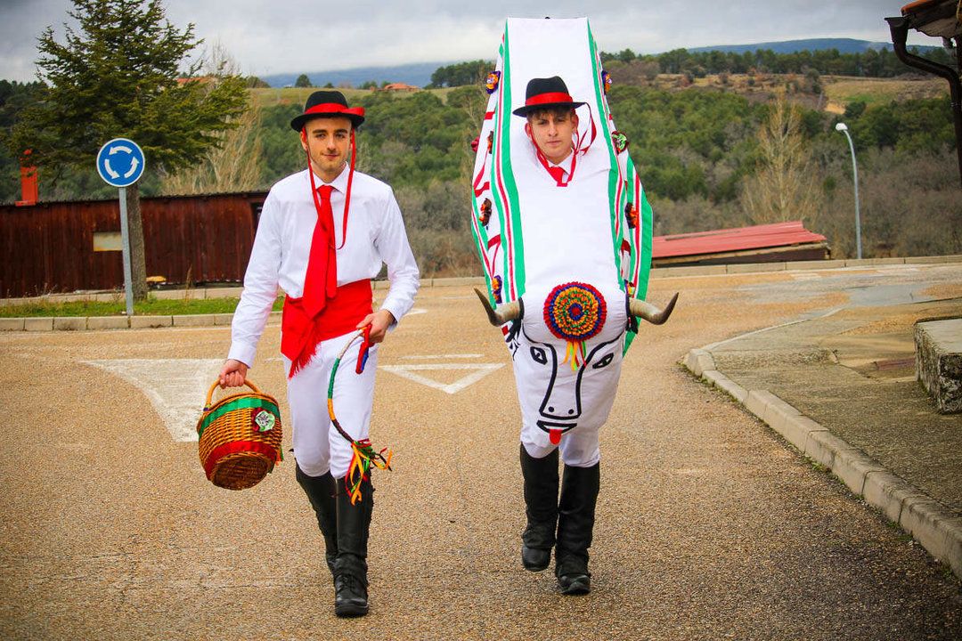The Fiesta de la Barrosa de Abejar has been declared a Festival of Tourist Interest in Castilla y León on 12/02/2025. This festival, somewhere between mythological and carnivalesque, is celebrated on the first Saturday after Shrove Tuesday. Of ancient and uncertain origin, the whole town takes part in the festival, although the protagonists are the young men, and among them, two are the main actors and will play the role of Barroseros. One Barrosero carries a wooden frame covered with a white sheet decorated with coloured ribbons, simulating the figure of a cow, which is La Barrosa, and the other Barrosero, carries a basket and a whip, also decorated, and visits the houses of the town receiving donations and food. The characteristic sound of the cowbells of La Barrosa accompanies the Barroseros during the tour of the streets of Abejar announcing their presence to the neighbours.