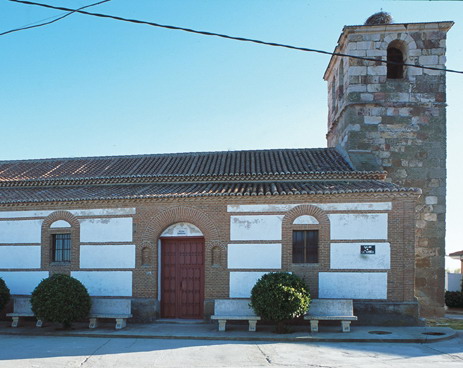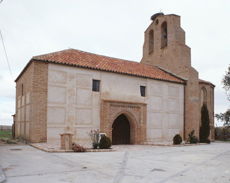 佩尼亚兰迪利亚教区教堂更多信息这座穆德哈尔罗马式教堂的后殿有三排拱门,由圆形筒形拱顶覆盖,并由三个尖拱支撑。后殿末端有一排拱门、饰有锯齿的檐口和三个由尖窗框住的枪眼,所有这些都是用砖砌成的。这座单殿教堂保留了原来的南墙和正面。后殿。通往旧墓地的门和墙壁的拱门是在 20 世纪 70 年代建造的一堵新墙被拆除后发现的。
