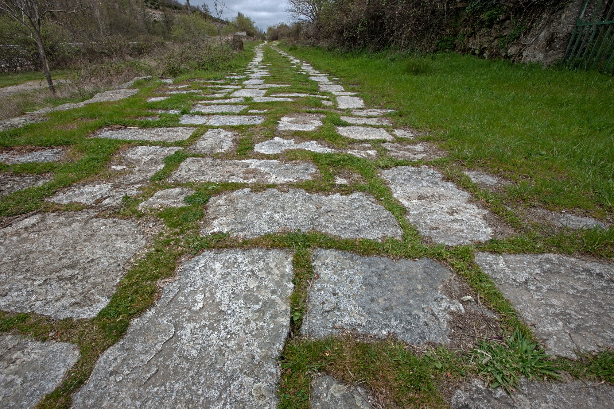 L'empreinte romaine se trouve tout au long de la route, où se conservent des sections de la chaussée pavée originelles ainsi que de nombreuses bornes routières. Les bornes routières sont des colonnes en pierre de deux mètres de haut, sur lesquelles figurent des inscriptions que font allusion à l'empereur et aux milles qui séparent la distance du parcours.