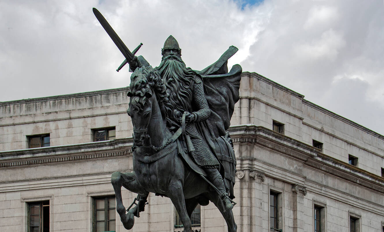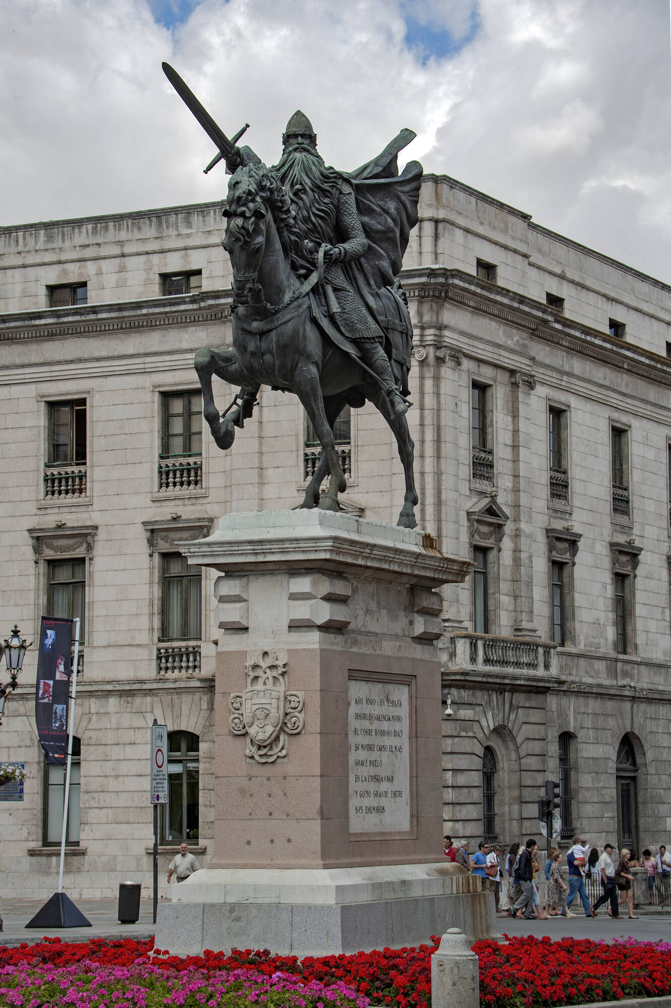 Rodrigo Díaz de Vivar, plus connu sous le nom de El Cid Campeador, était un héros légendaire de Burgos . Homme d'armes, le chevalier légendaire a apporté son aide pendant des années aux rois castillan et léonais à la tête de sa propre suite redoutée. En 1081, il entra à Tolède pour venger l'attaque musulmane contre Gormaz (Soria) sans attendre les ordres du roi Alphonse de Léon, qui le bannit en guise de punition, mettant ensuite son épée Tizona au service des autres monarques de la péninsule, jusqu'à ce qu'il soit appelé. encore. par Alphonse VII pour aider son armée contre les Almoravides. Ils ne se rencontrèrent jamais et le Cid fut déclaré traître, se concentrant alors sur la prise de Valence, après la victoire de laquelle en 1094. Dans la ville méditerranéenne, il mourut en 1099 lorsque, selon les chroniques de l'époque, il fut transpercé par une flèche perdue au sommet des remparts de défense de la ville. Sa vie a inspiré le poème épique le plus important de la littérature espagnole, El Cantar de mio Cid .