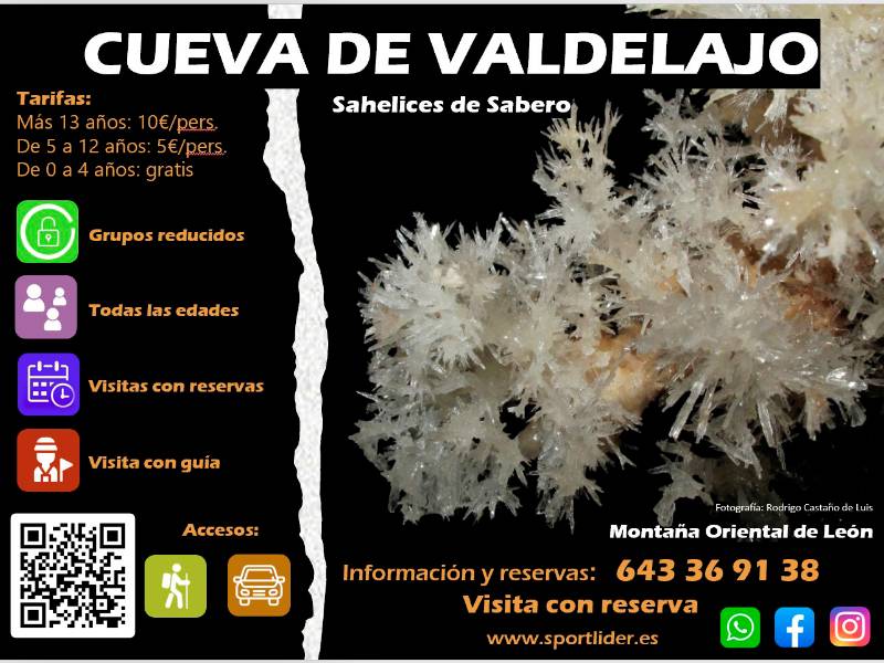The Valdelajo Cave was discovered by chance in 1999 during surveys for the exploitation of a quarry, near the town of Sahelices de Sabero. An extensive study carried out by the Matallana Speleological Group (Leon) highlighted the beauty and interest of the cavity and its formations, recommending a high degree of protection for it, compatible with an orderly visit. Since then, with a significant effort economically, the Sabero City Council, supported by the Provincial Council of Leon and the Montaña de Riaño Local Action Group, has been carrying out all the work to improve access to the cave, interior adaptation and lighting, following the technical criteria necessary to preserve the cavity and show it to the public in its original state.