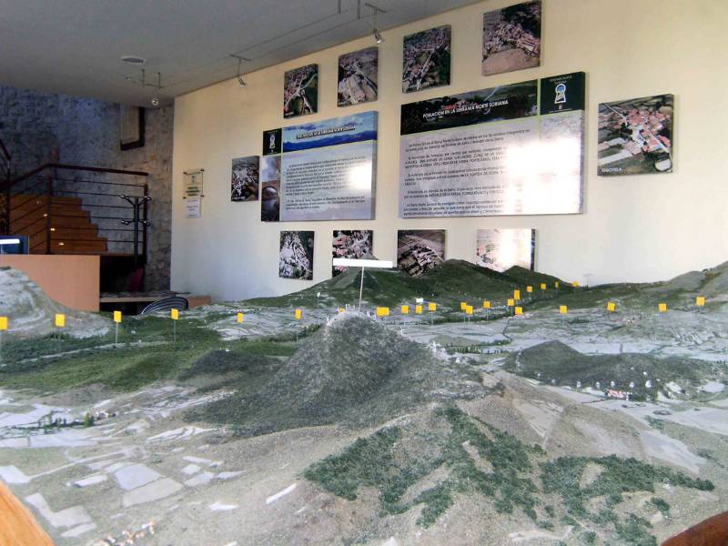 - O primeiro andar é dedicado aos painéis informativos sobre a fauna e a flora da zona, as 10 igrejas do município, o museu etnográfico de San Andrés de Sória, as festividades únicas e os vestígios mais antigos. As icnites (pegadas fossilizadas de dinossauros) encontradas no sítio Gallinero dehesa foram reproduzidas no solo.
