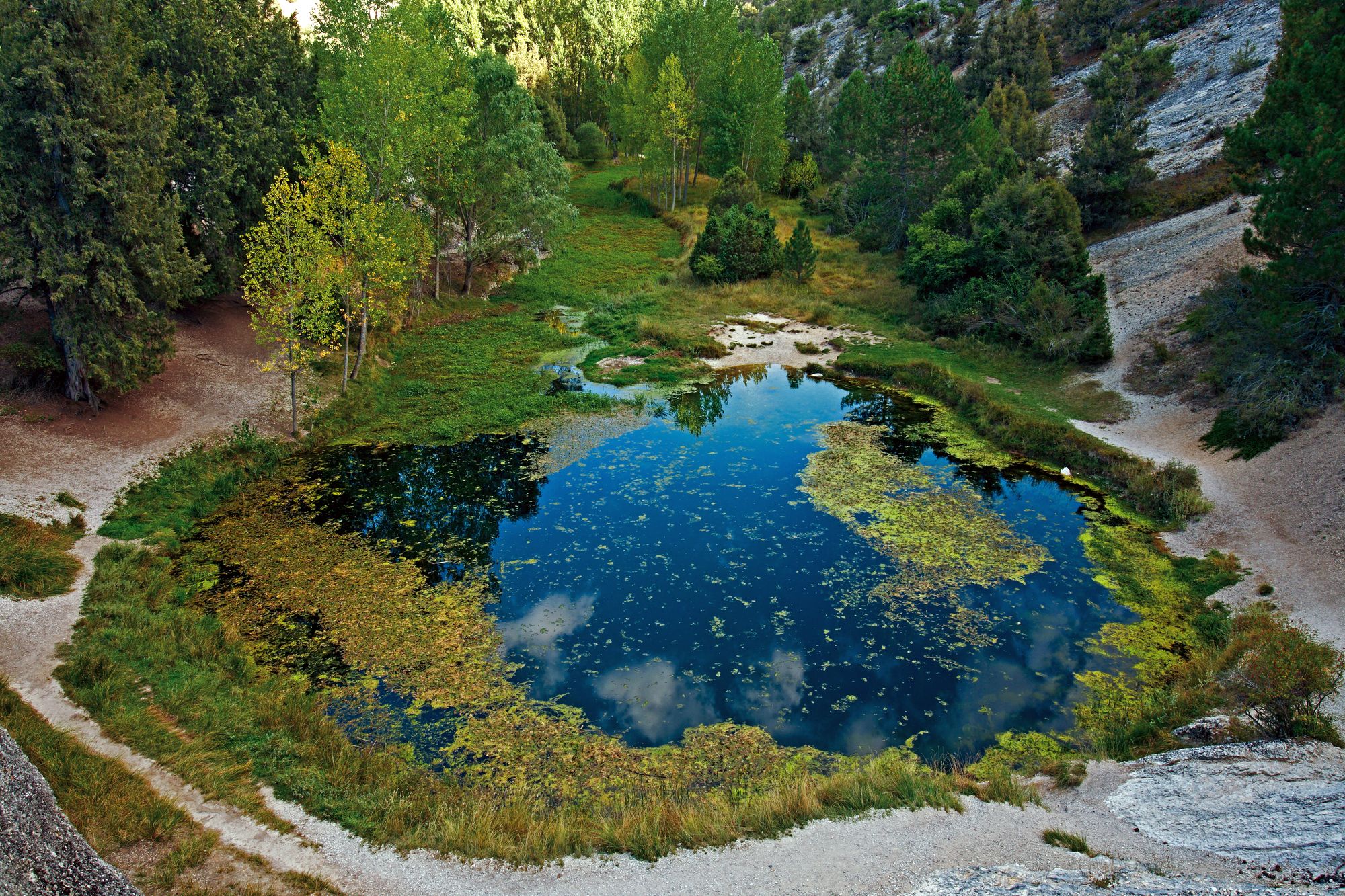 Learn about the historical and cultural value of La Fuentona, where archaeological remains from the Bronze Age and the Middle Ages have been found. Enjoy the literary references of La Fuentona, such as the legend and Bécquer's poem "the green eyes". Follow the riverside path that takes you to this hidden paradise, surrounded by ravines, gullies, gorges and vegetation. Admire the water lilies and buttercups that adorn the water, and the junipers that guard the path.