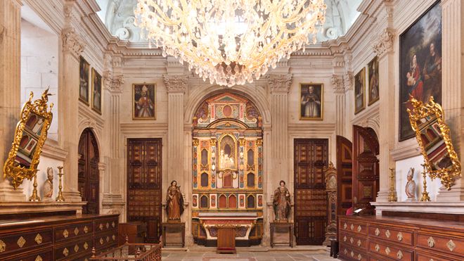À l’intérieur se trouve un tombeau de style gothique-flamand, appartenant au fils du roi D. João I, l’infant D. Afonso. Sous le règne de D. Manuel, au siècle suivant, d’autres éléments décoratifs ont été introduits et notamment les fonts baptismaux et, à l’extérieur de la chapelle principale, une niche abritant la statue de Notre-Dame du Lait attribuée à Nicolas Chantereine, laquelle figure sur le blason de la ville.