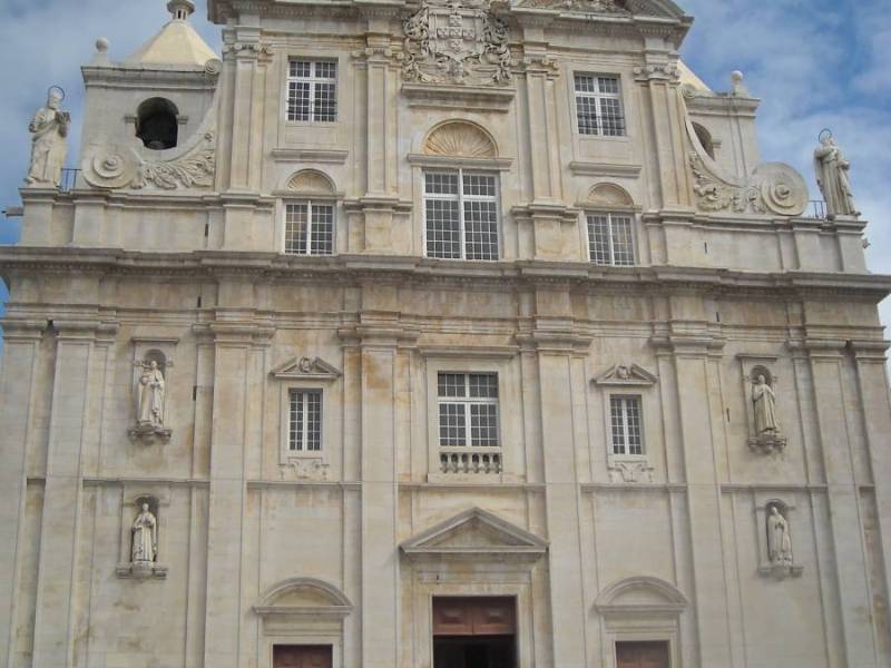Fondée par les Jésuites en 1598, la Nouvelle Cathédrale de Coimbra présente une façade construite en deux phases : la première de style classique et la seconde baroque. Le retable de la chapelle principale est réalisé avec des sculptures en bois doré de la fin du XVIIe siècle de Jerónimo Luís, qui fut également l'auteur des retables du transept. Le fauteuil en bois noir du XVIIème siècle, provenant de la Vieille Cathédrale. Orgues néoclassiques du XVIIIe siècle. Fonts baptismaux manuélins, provenant de l'ancienne cathédrale.